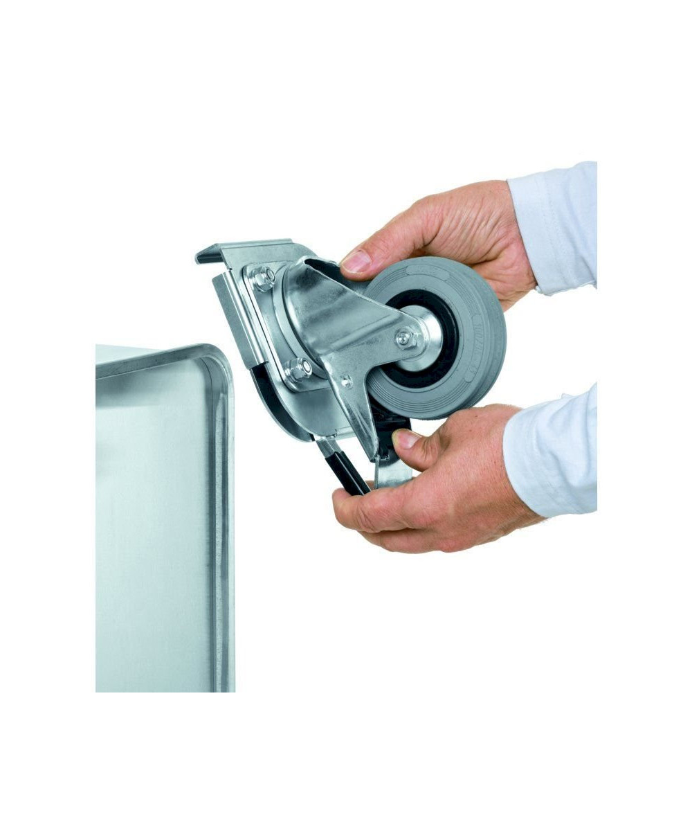 - Aus Vollgummi, Ø 100 mm, Lenkrollen ausgestattet mit Radfeststeller.