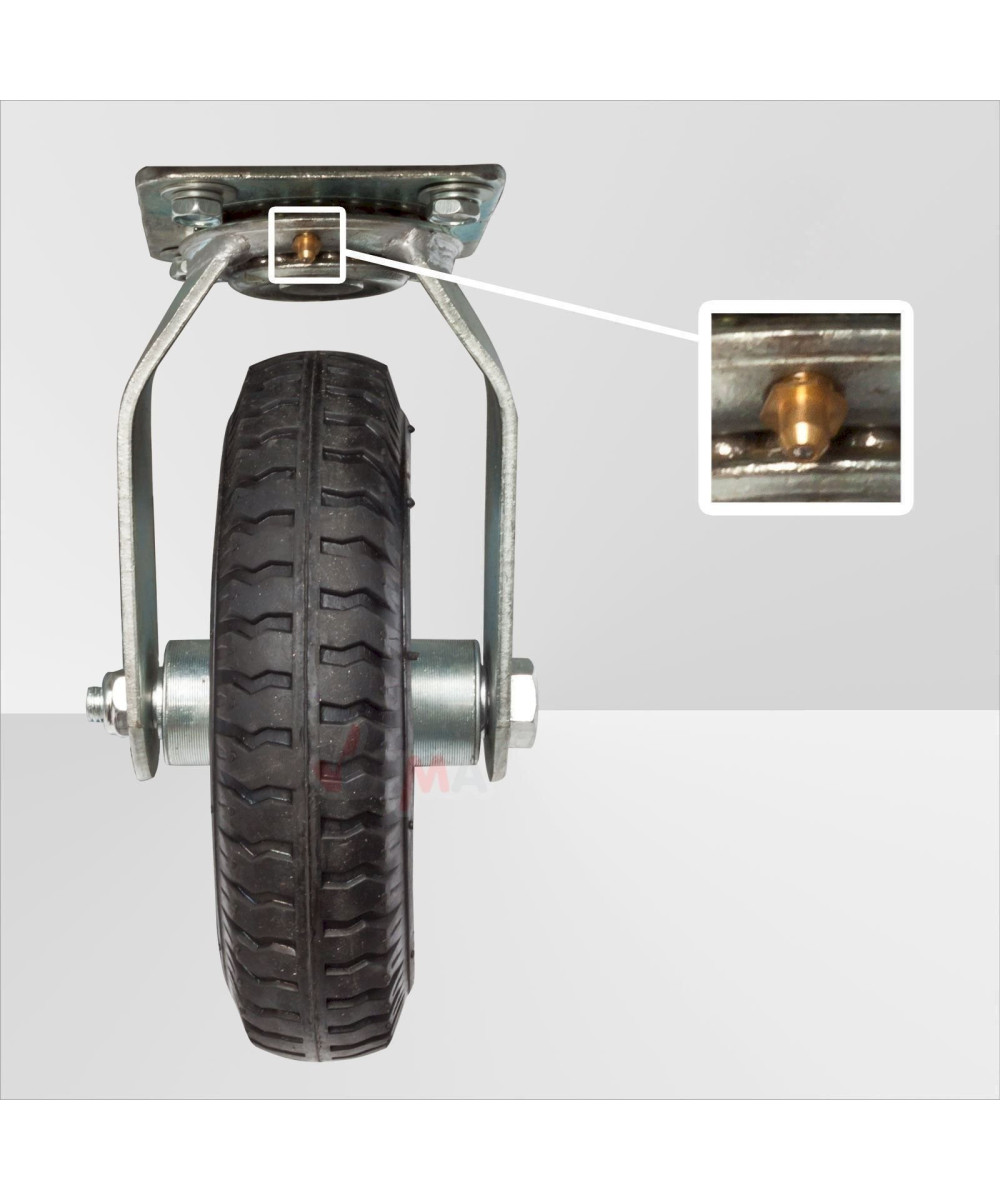 - Kugelgelagerte Räder, Hinterräder sind lenkbar (mit Schmiernippel)