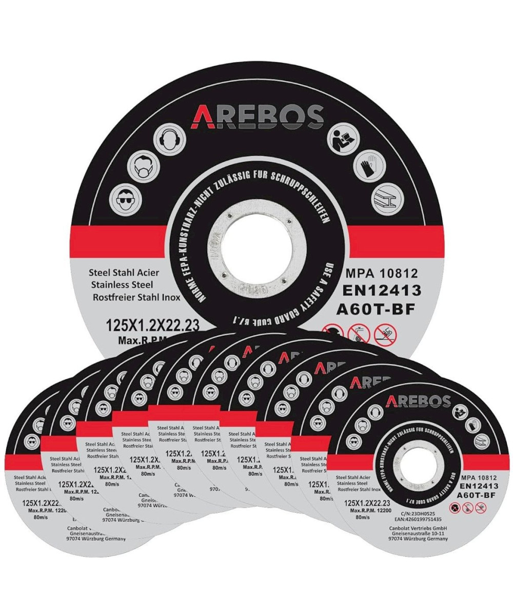 AREBOS Trennscheiben sind für alle gängigen Winkelschleifer geeignet und sollten aufgrund ihrer Industriequalität in Ihrer Werkstatt nicht fehlen.