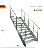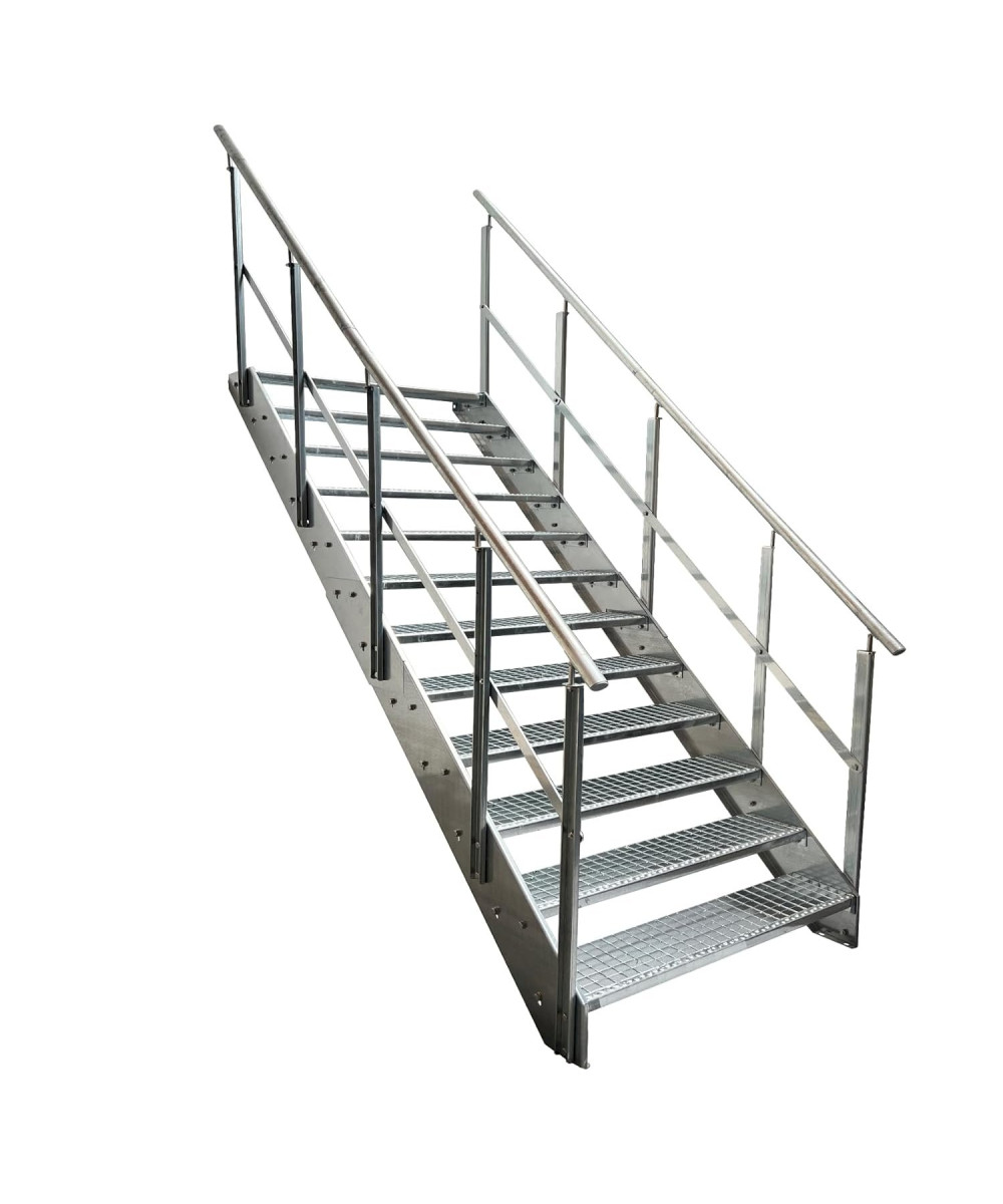 Stahltreppe 12 Stufen mit beidseitiges Geländer vollverzinkt (B 120 x H 228 cm)