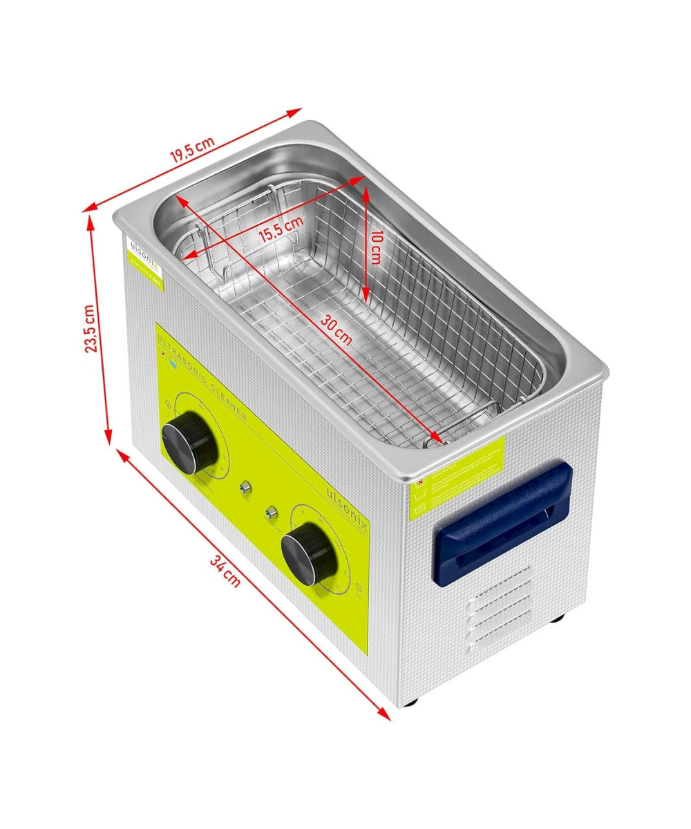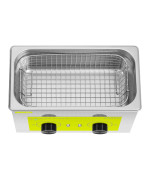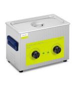 Zwei Schallgeber erzeugen mit einer Leistung von 120 W eine Ultraschallfrequenz von 40 kHz, die auch an den Stellen sorgfältig und effektiv reinigt, die schwer zugänglich sind. Sogar dort, wo das menschliche Auge Verschmutzungen nicht erkennen kann. Die Reinigungszeit lässt sich stufenlos zwischen 0 und 60 min einstellen. Das Ultraschall Reinigungsgerät hat eine Heizleistung von 100 W und kann für einen exakt abgestimmten Reinigungsprozess stufenlos bis 80 °C reguliert werden. Der Timer wie die Temperatur lassen sich bequem mit Hilfe großer Drehknöpfe einstellen.