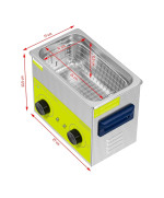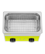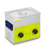 Zwei Schallgeber erzeugen mit einer Leistung von 120 W eine Ultraschallfrequenz von 40 kHz, die auch an den Stellen sorgfältig und effektiv reinigt, die schwer zugänglich sind. Sogar dort, wo das menschliche Auge Verschmutzungen nicht erkennen kann. Die Reinigungszeit lässt sich stufenlos zwischen 0 und 60 min einstellen. Das Ultraschall Reinigungsgerät hat eine Heizleistung von 100 W und kann für einen exakt abgestimmten Reinigungsprozess stufenlos bis 80 °C reguliert werden. Der Timer wie die Temperatur lassen sich bequem mit Hilfe großer Drehknöpfe einstellen.