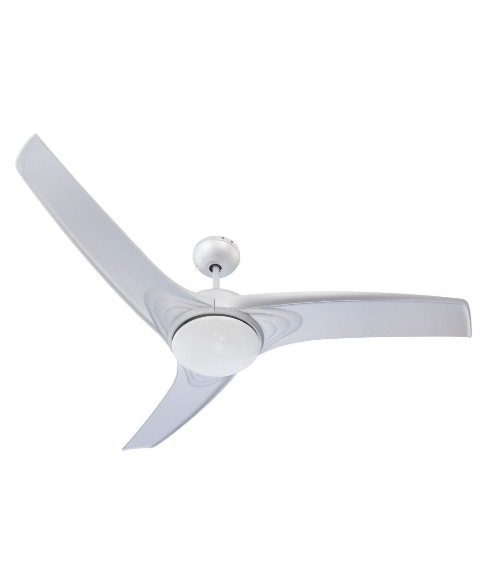 Decken-Ventilator aus der Serie Primo mit silberfarbenen Flügeln, 132 cm mit Licht und Fernbedienung.