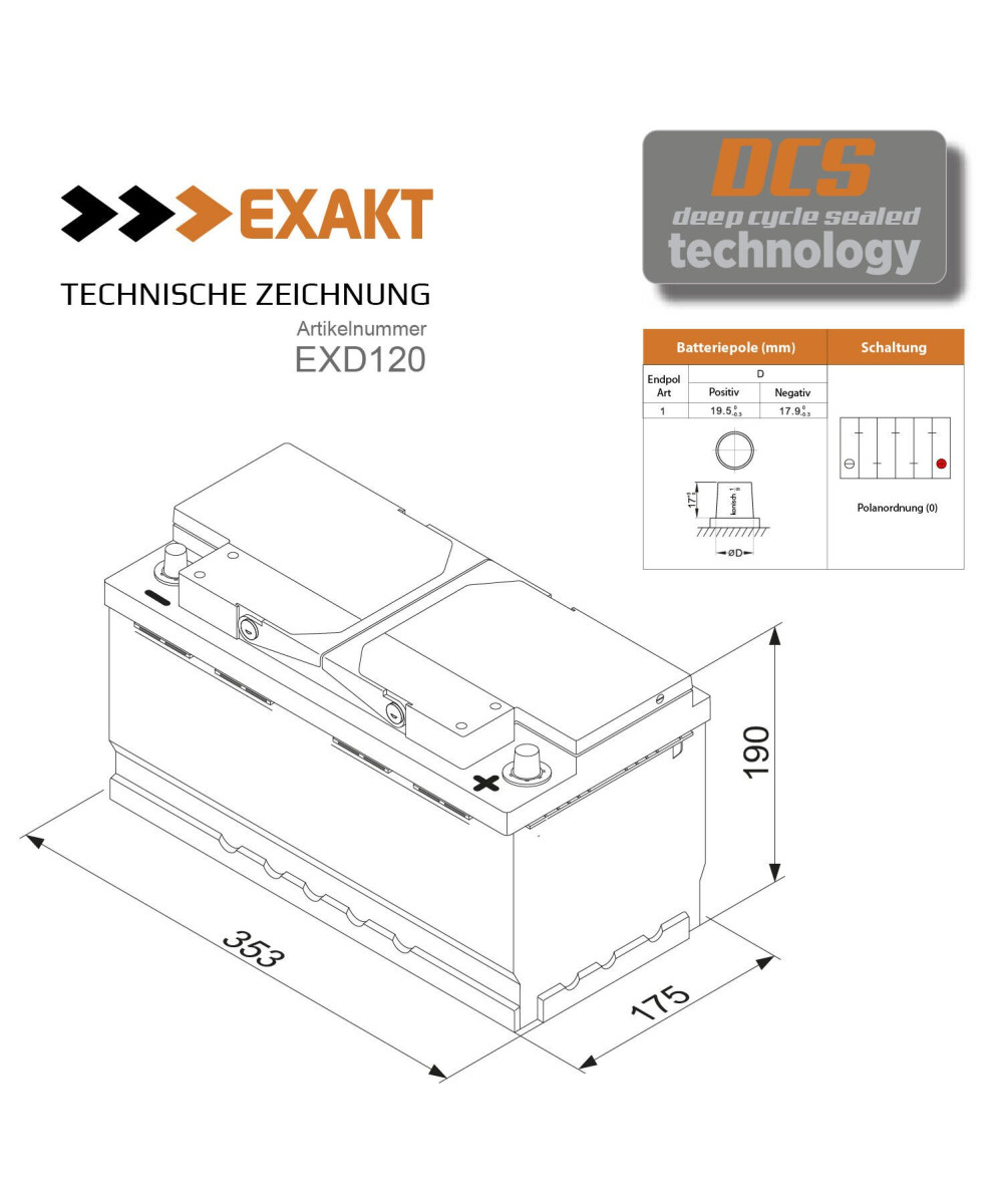 EXAKT Solarbatterie 120Ah 12V Wohnmobil Versorgung Boot