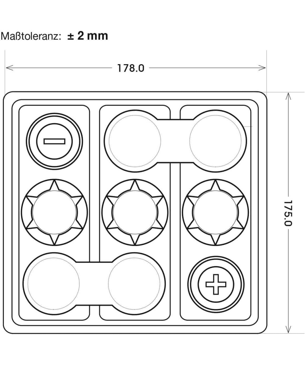 | Durchmesser der Pole | Plus = 19,5mm / Minus = 17,9mm |