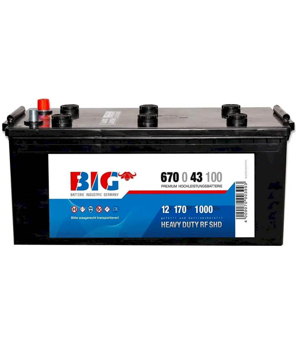 Die BIG Premium Starterbatterie mit 170Ah 1000A deckt nahezu alle Einsatzbereiche ab. Die Leistung unserer BIG Batterien entspricht Erstausrüster-Qualität und erfüllt alle Anforderungen der Nutzfahrzeughersteller. Für unsere BIG Nutzfahrzeugbatterie wurde die aktuelle und moderne Silber-Calcium Technologie verwendet. Diese Technologie macht unsere Premium Batterie ideal für Fahrzeuge mit sehr hohem Energiebedarf. Zusätzlich besitzt unsere BIG LKW Batterie eine ausgezeichnete Kaltstartleistung und das in jeder Situation.