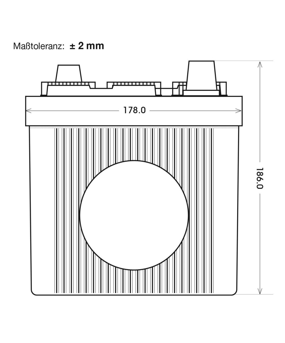 HINWEIS: Die Batterie wird trocken (ohne Säurepacks) geliefert, da der Versand von Batteriesäure an Privatpersonen seit dem 1. Februar 2021 untersagt ist. Bitte befüllen (aktivieren) Sie die Batterie nach Erhalt nur mit Batteriesäure (Schwefelsäure 37,5%) und nicht mit destilliertem Wasser!