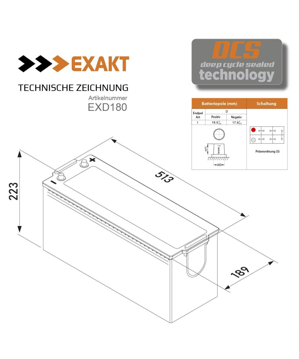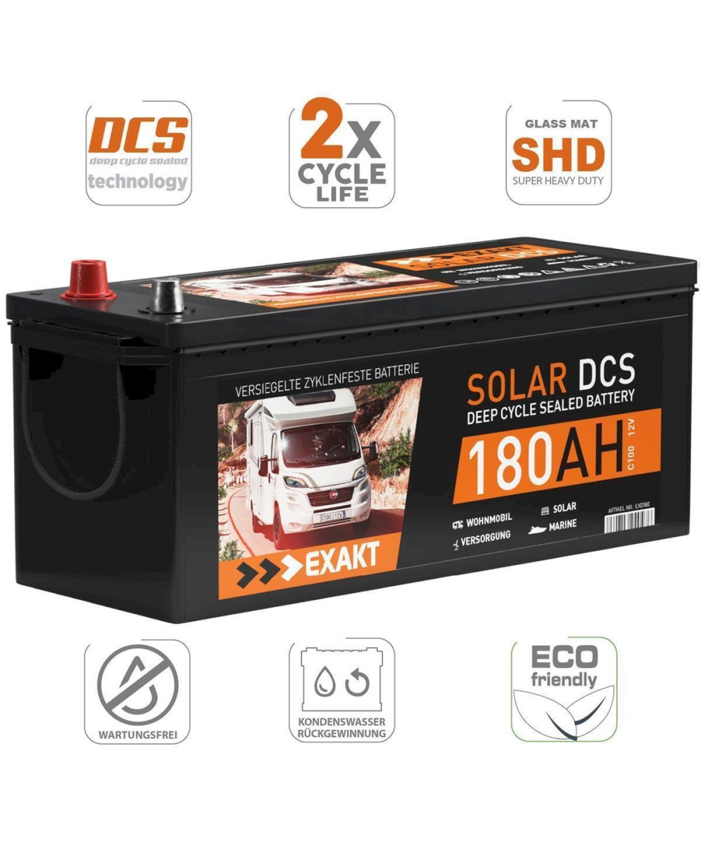 EXAKT Solar DCS Solarbatterie 180Ah 12V Wohnmobil Batterie Solar Bootsbatterie
