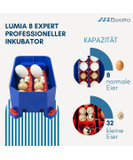 - NON-STOP-VERSORGUNG: Die mit 12 V versorgte LUMIA 8 EXPERT wird mit einem Zusatzkabel geliefert, das an die Steckdose eines Zigarettenanzünders angeschlossen werden kann. Sollte im Haus der Strom ausfallen, kann das Gerät daher an eine beliebige 12 V-Steckdose, wie z. B. die des Autos, angeschlossen werden, so dass der Brütprozess nicht unterbrochen werden muss.
