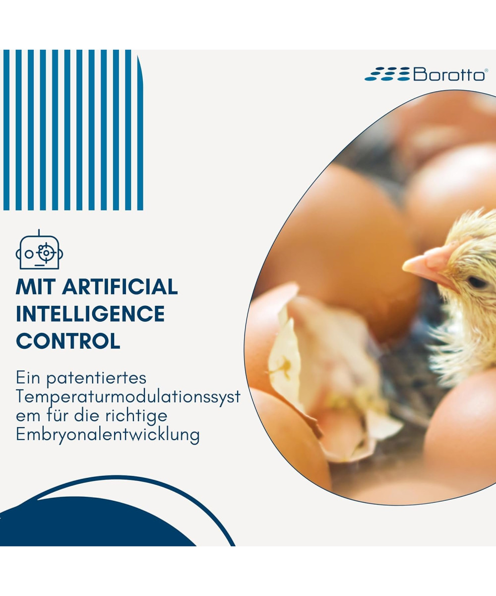 - ARTIFICIAL INTELLIGENCE CONTROL: Das Brutgerät verwendet eine hochentwickelte elektronische Temperatursteuerung, die es gestattet, das Mikroklima in seinem Inneren bis auf 0,1°C genau stets konstant zu halten. Das elektronische System ist so ausgelegt, dass der eingegebene Wert auch bei Schwankungen der Außentemperatur um die Maschine herum konstant bleibt und garantiert so die korrekte und störungsfreie Embryoentwicklung und dabei auch höhere Schlupfraten!