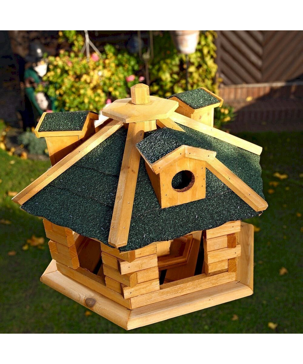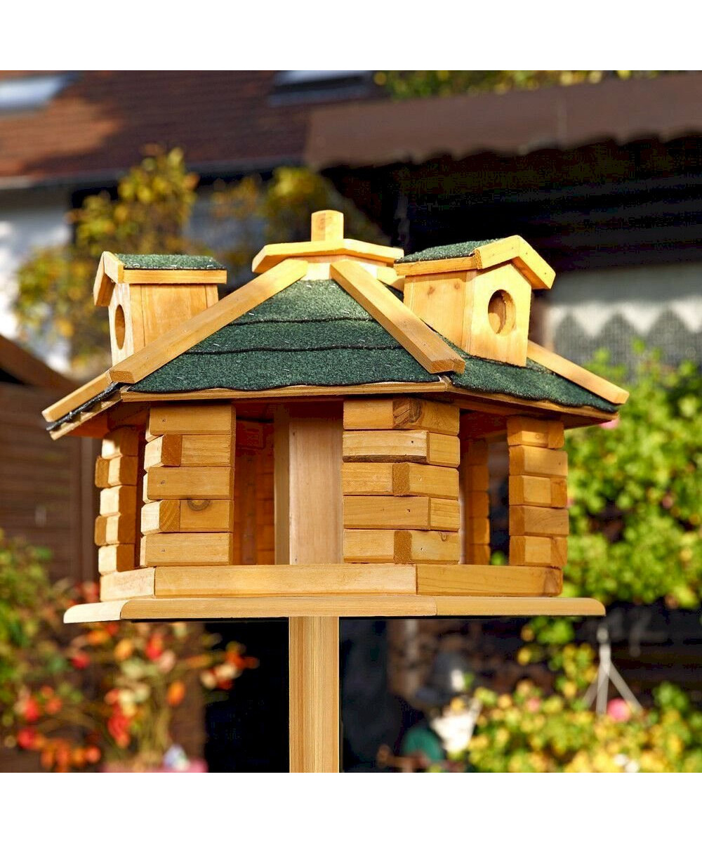 - Inkl. aufklappbaren Futterspender (Schornstein), das Futter ist daher vor Wind und Regen geschützt