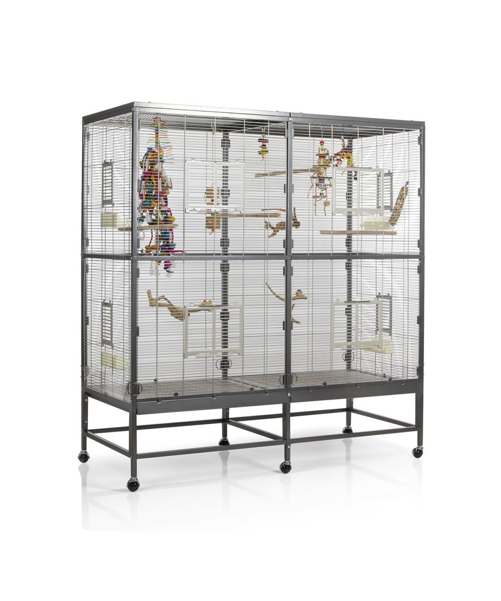 - Stabile, 360° drehbare Rollenfüße: erleichtert das Verschieben der Voliere im Haus oder ins Freie