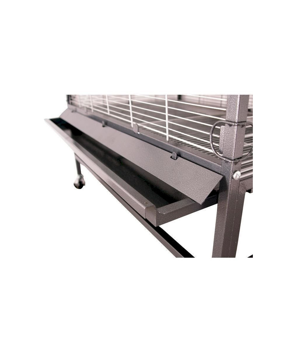 Die Vogelvoliere hat ein rausnehmbares Kotgitter und dank der Kotschublade ist die Reinigung kinderleicht. Durch die 4 stabilen Rollen können Sie die Voliere bequem hin und her bewegen. Zwei Türen in der Vorderseite und vier Türen an den Seiten (seitlich sehr stabile Türen aus Metall siehe letztes Bild) gewähren einen guten Eingriff in die Voliere und viele Möglichkeiten z.B. ein optionales Badehaus anzubringen.