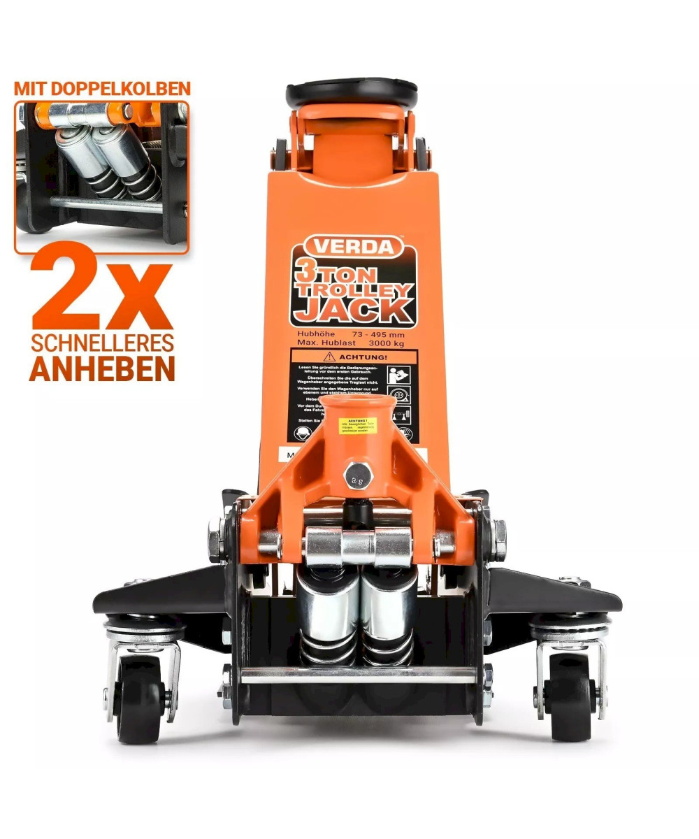 Verda Tiefer Wagenheber 3t Rangierwagenheber 75 - 515 mm mit Doppelkolben