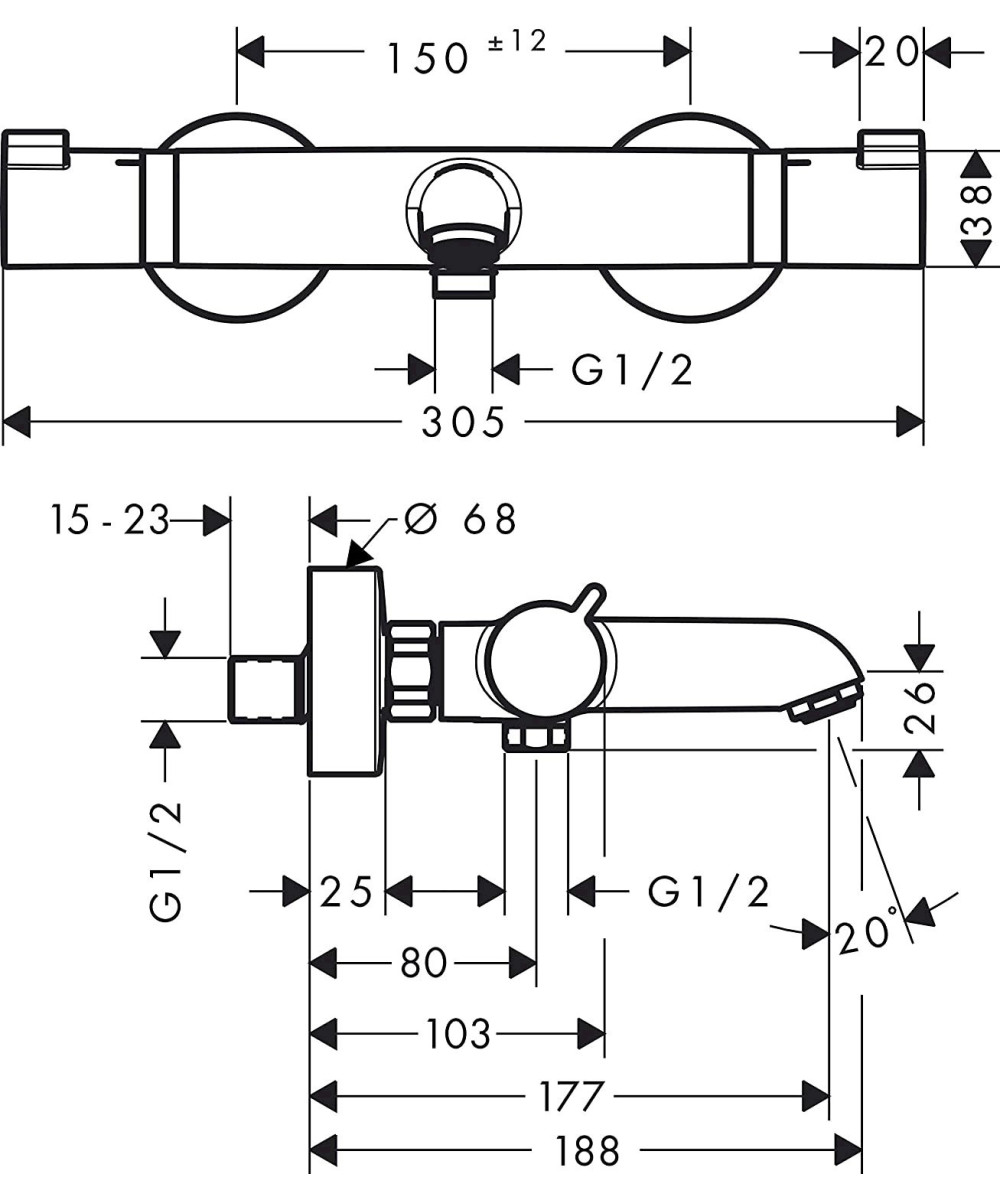 Wandmontage · Chrom · Ausladung 177 Mm · Drehgriffe