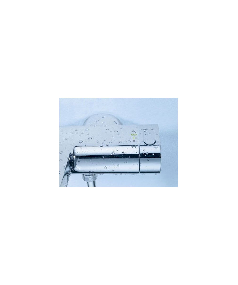 integrierter Grohe EcoButton (Spartaste mit Sparanschlag zur Brause) - Grohe SafeStop Sicherheitssperre bei 38 Grad C Brauseabgang unten