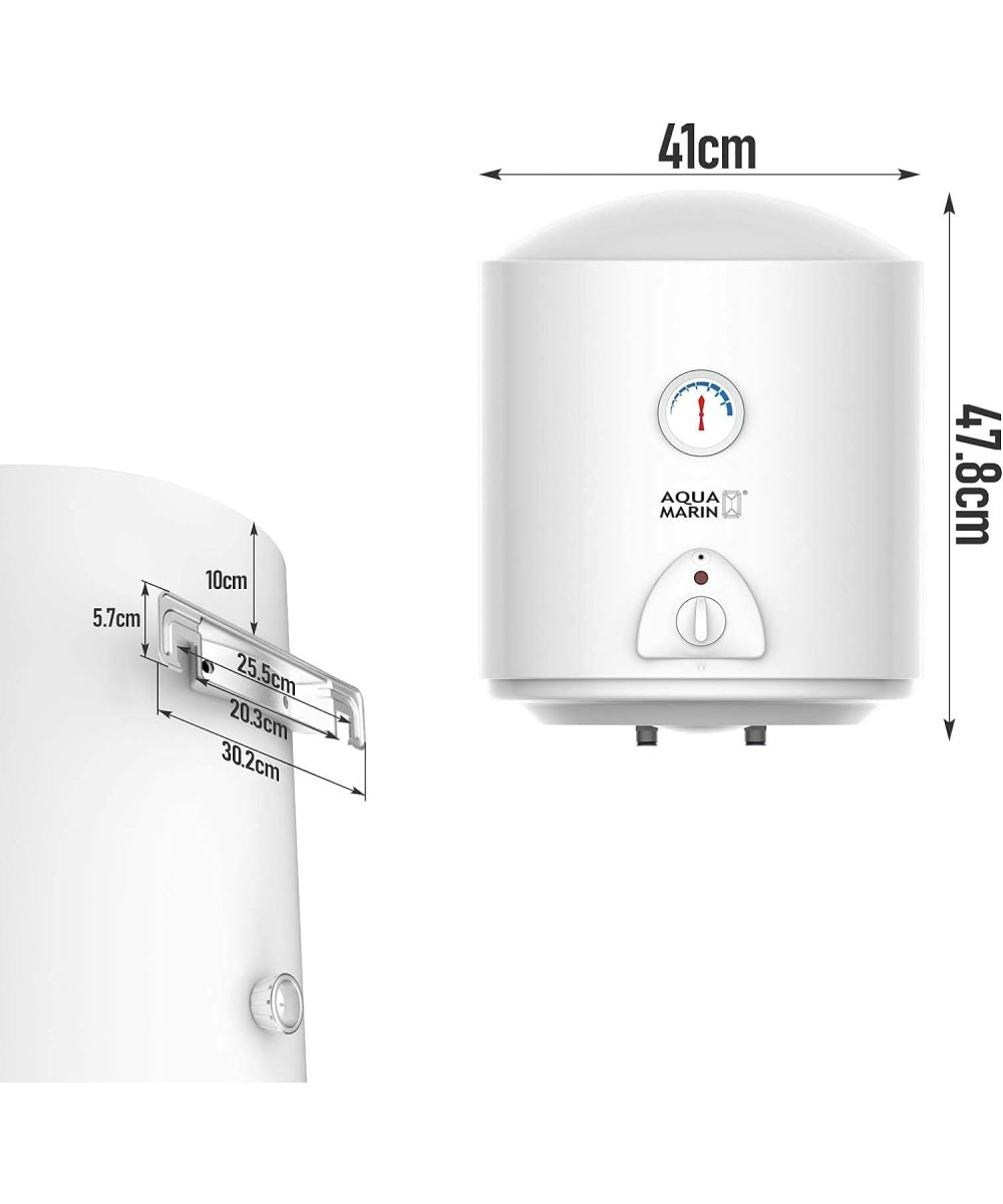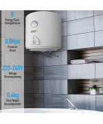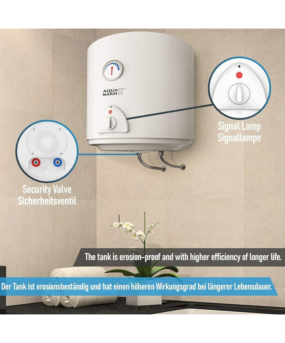 Die elektrischen Warmwasserspeicher von Aquamarin® sind eine praktische und sparsame Ergänzung für Ihr Badezimmer - dieser Boiler erhitzt das Wasser bis zu 75° C auf und hält die Temperatur zwei Tage lang stabil, sodass Ihnen das warme Wasser nie ausgehen kann. Die Innenseite des Tanks ist mit einer schützenden Emailleschicht überzogen, die Ihr Gerät vor Korrosion schützt und eine längere Lebensdauer gewährleistet.