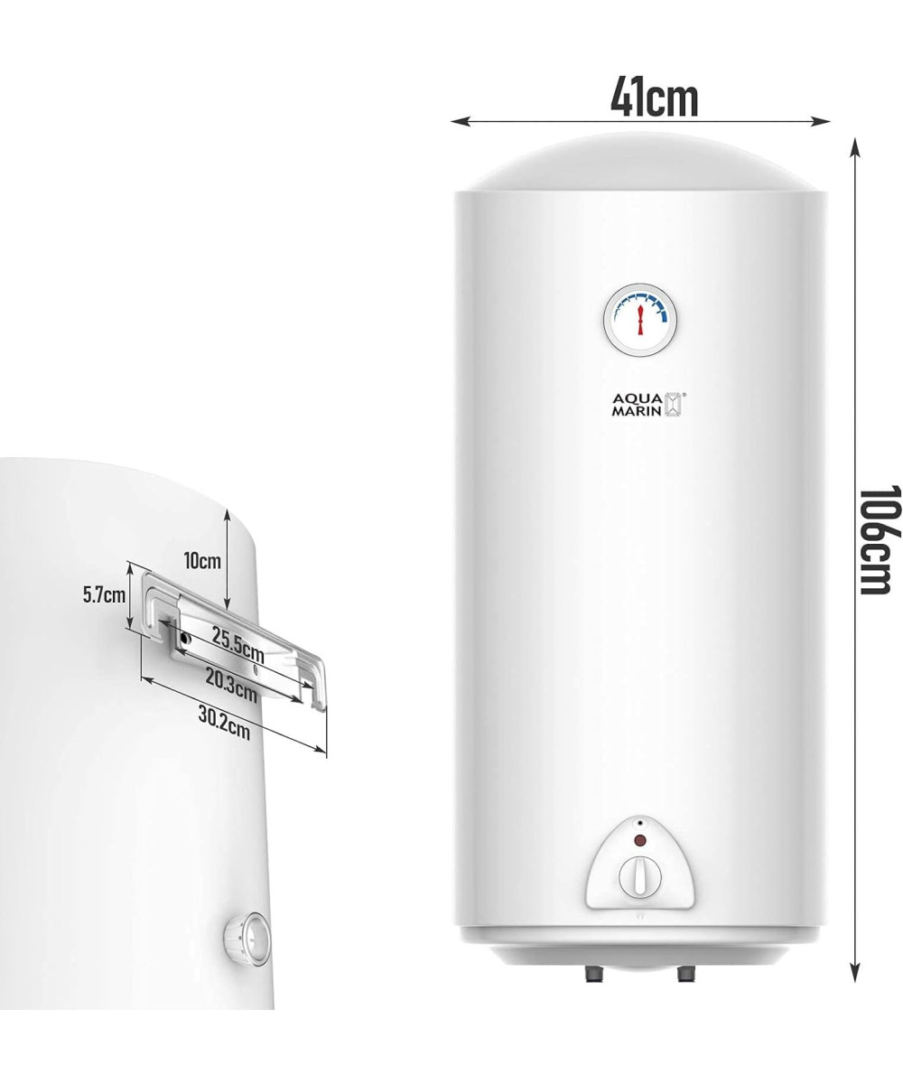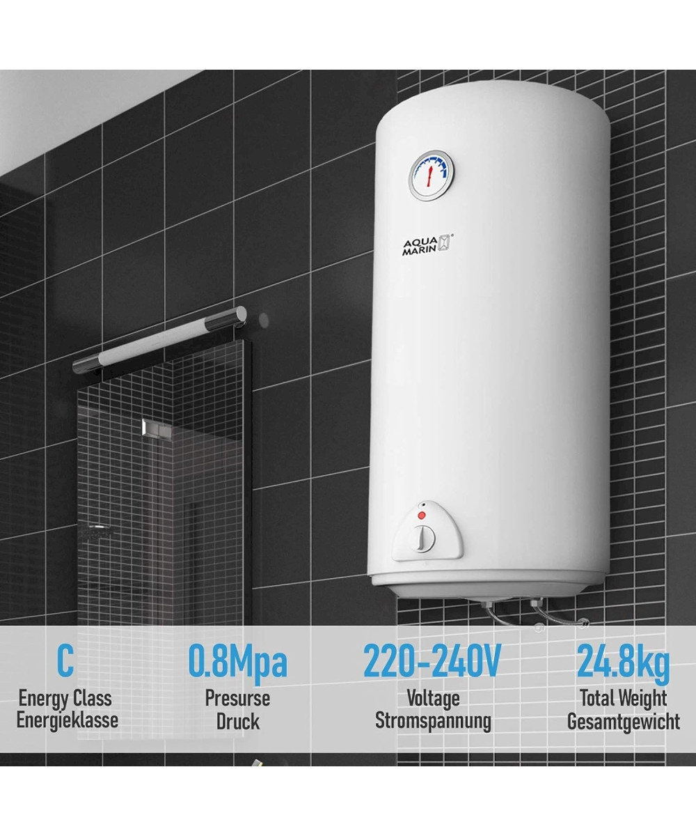 Die elektrischen Warmwasserspeicher von Aquamarin® sind eine praktische und sparsame Ergänzung für Ihr Badezimmer - dieser Boiler erhitzt das Wasser bis zu 75° C auf und hält die Temperatur zwei Tage lang stabil, sodass Ihnen das warme Wasser nie ausgehen kann. Die Innenseite des Tanks ist mit einer schützenden Emailleschicht überzogen, die Ihr Gerät vor Korrosion schützt und eine längere Lebensdauer gewährleistet.