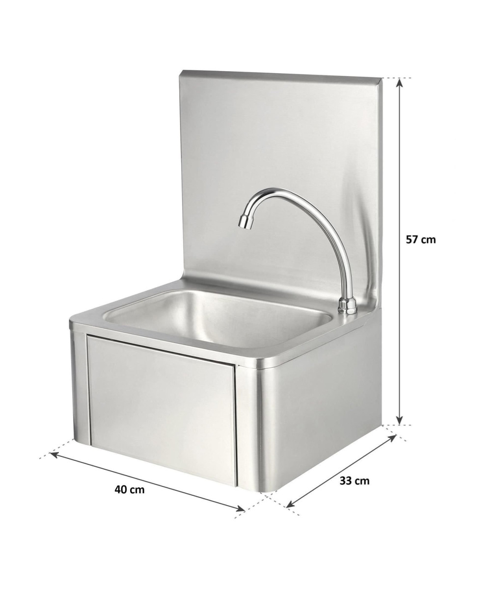 Dieses Waschbecken ist die ideale Hilfe für Küche, Garage, Gastronomie, Großküchen, Kantinen und mehr. Das Waschbecken ist aus hochwertigem V2A Edelstahl gefertigt und kann ganz bequem mit dem Knie betätigt werden.