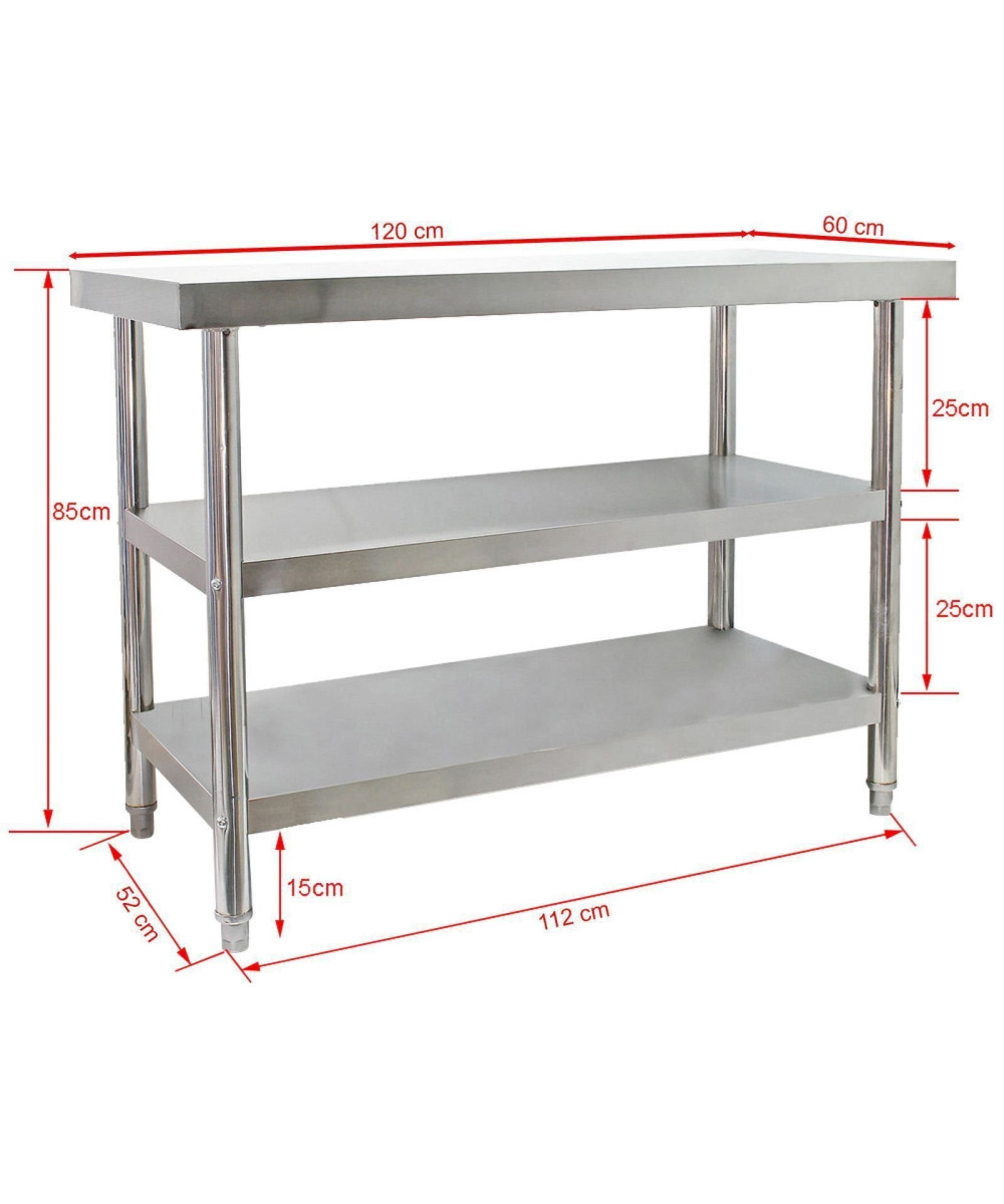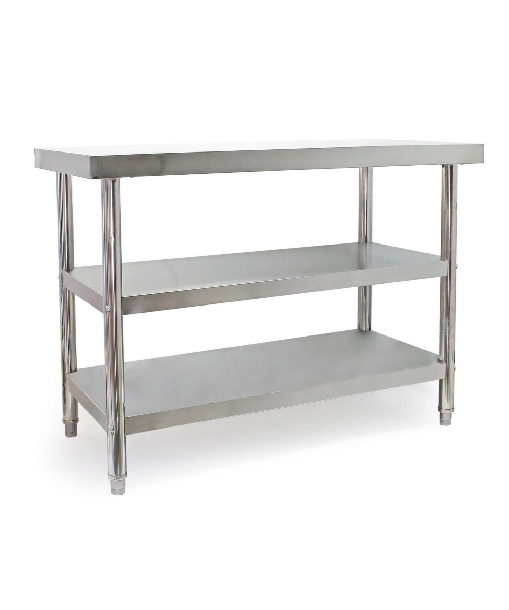 Edelstahl Arbeitstisch mit 120x60x85cm Arbeitsfläche und 2 Ablagen