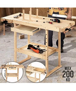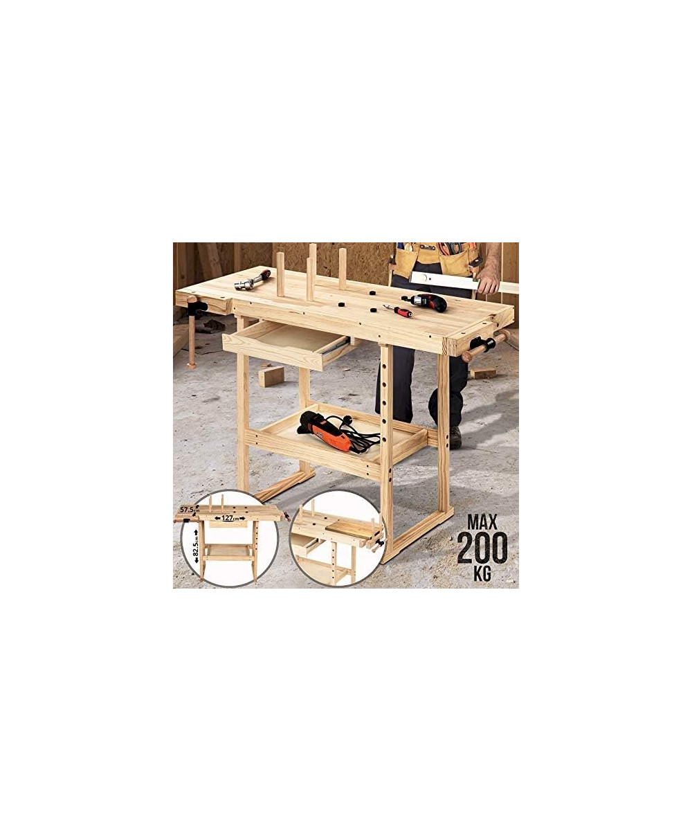 Hobelbank aus Tannenholz mit Spannzange, Schraubstock und Schublade 127x57.5x82.5cm max 200Kg