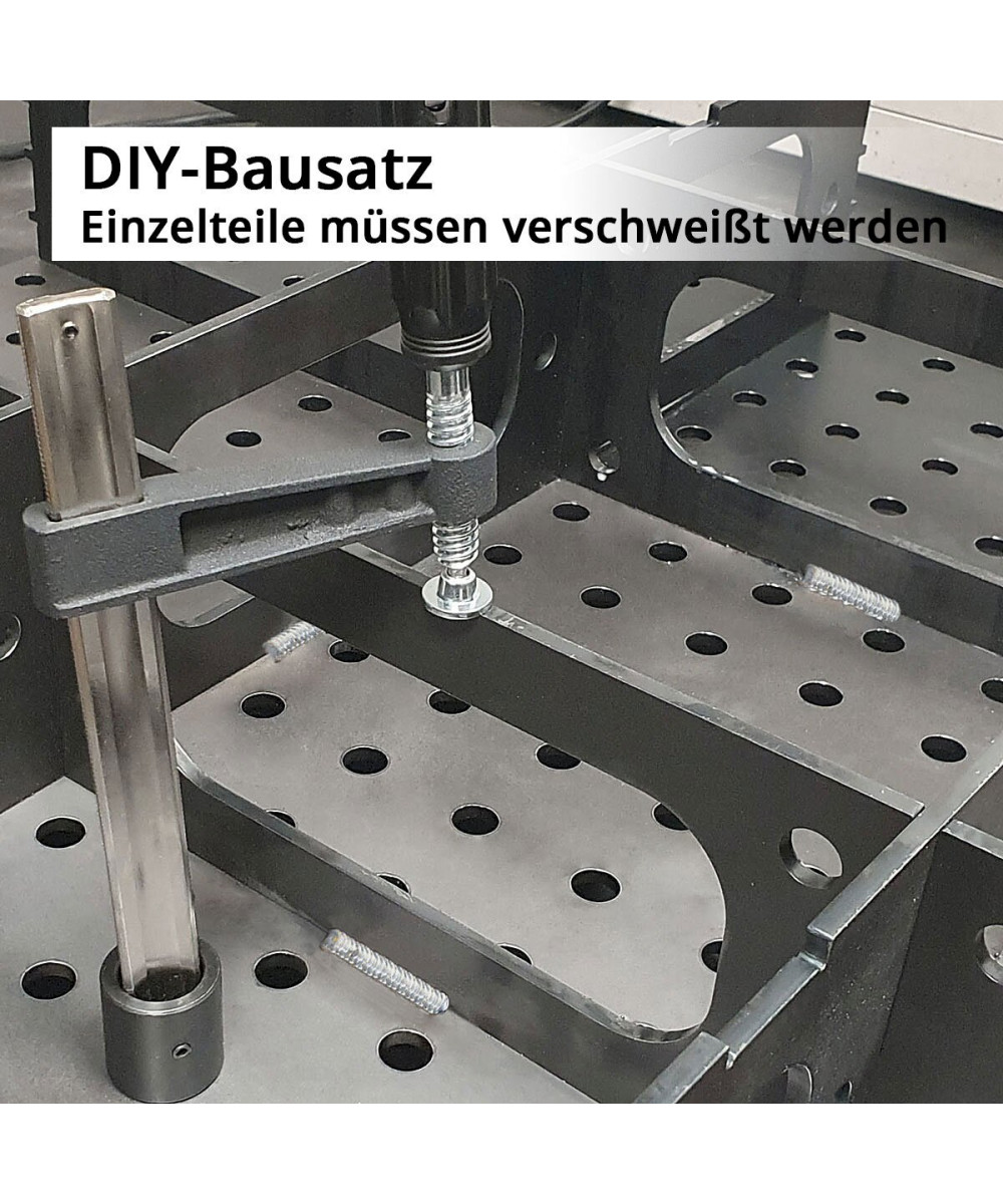 ⚠️ Der Montagetisch wird in Einzelteilen als DIY-Bausatz geliefert und muss vor der Benutzung selbst verschweißt werden.