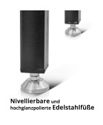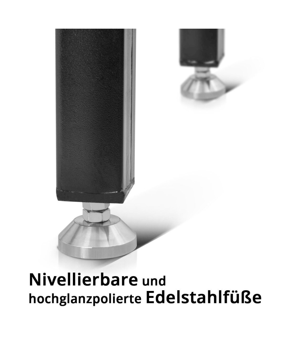 - Die robuste Oberfläche aus hochwertigem Kohlenstoffstahl ist besonders resistent gegen Schläge und Kratzer. Nivellierbare und hochglanzpolierte Edelstahlfüße sowie pulverbeschichtete Tischbeine sorgen für sicheres und komfortables Arbeiten.