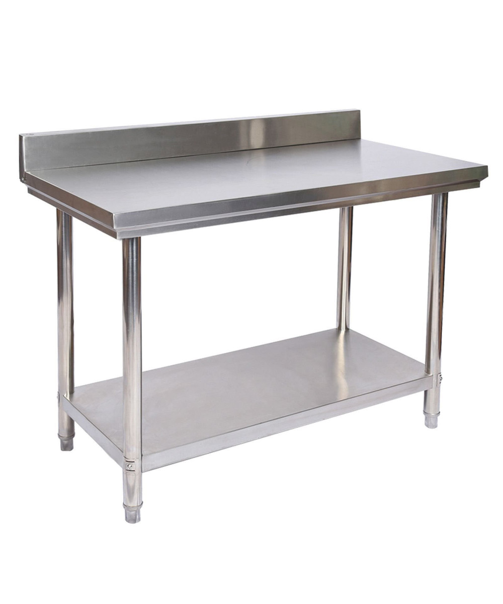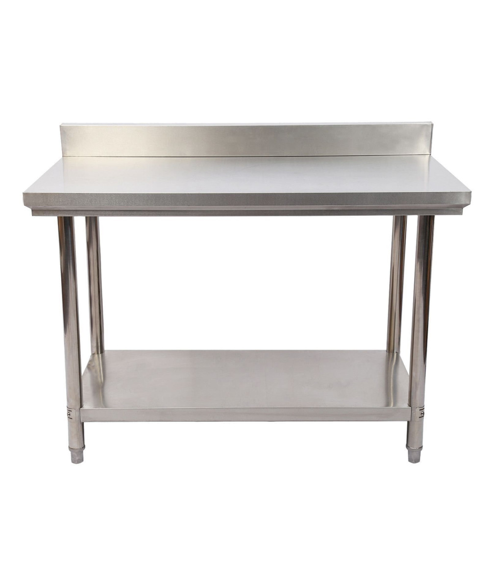 Dieser Arbeitstisch aus V2A – Edelstahl wurde in schwerer und massiver Ausführung hergestellt und ist durch die Verstärkung der Arbeitsfläche durch eine MDF-Platte besonders robust und beanspruchbar. Dank der großen Ablage unterhalb der Arbeitsfläche bleibt der Arbeitsbereich sauber und aufgeräumt und es bleibt genügend Platz für die eigentliche Arbeit.