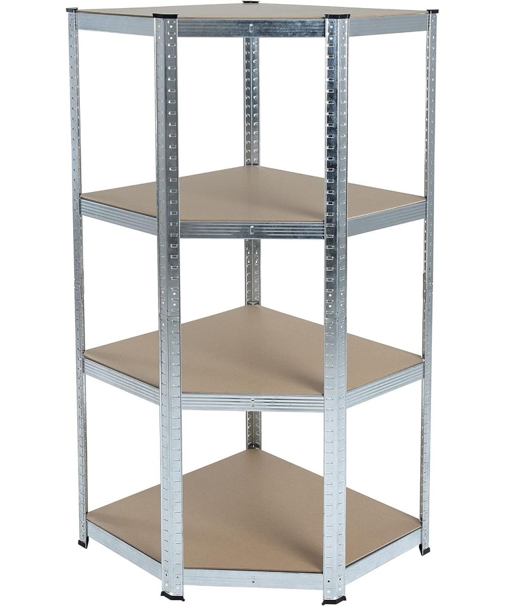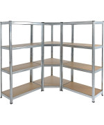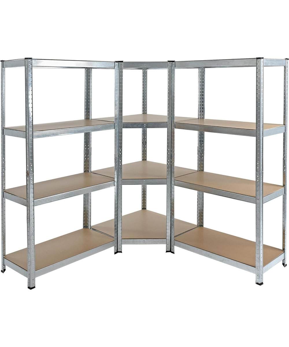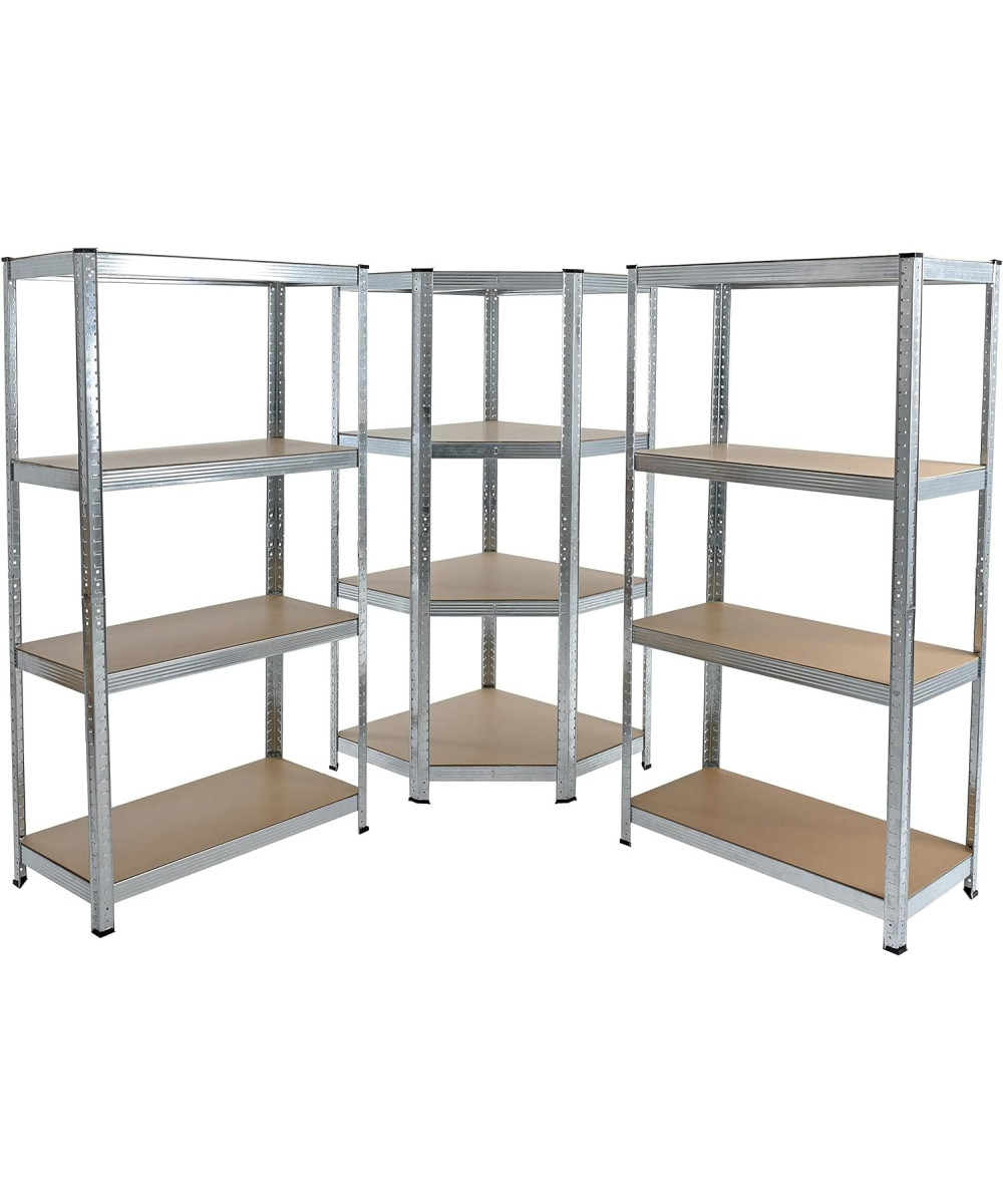 Mit diesem Regal Set nutzen Sie Ecken optimal aus. Das Gestell ist aus einem stabilen, verzinkten Stahlrahmen gefertigt und mit Querstreben unter den Böden ausgestattet, die eine noch größere Stabilität gewährleisten. Die Enden sind mit schonenden Kunststoffkappen versehen. Das Lagerregal wird spielend leicht im Stecksystem aufgebaut und lässt sich mit anderen Steckregalen kombinieren.