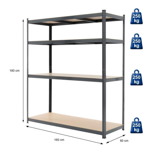 Werkstattregale anthrazit, 180x160x60 cm, aus pulverbeschichtetes Metall und MDF Holzfaserplatte, bis 1000 kg