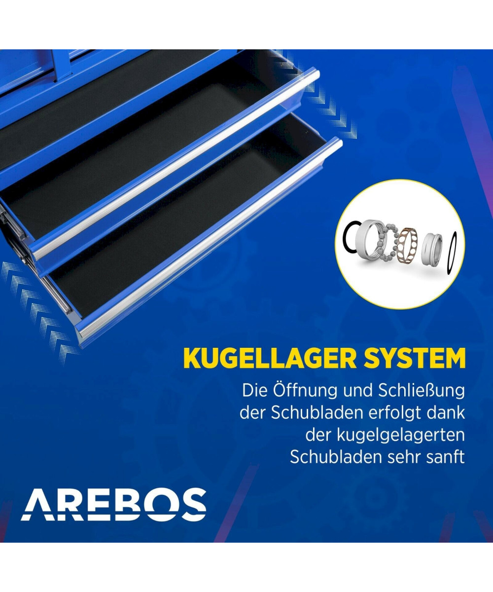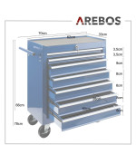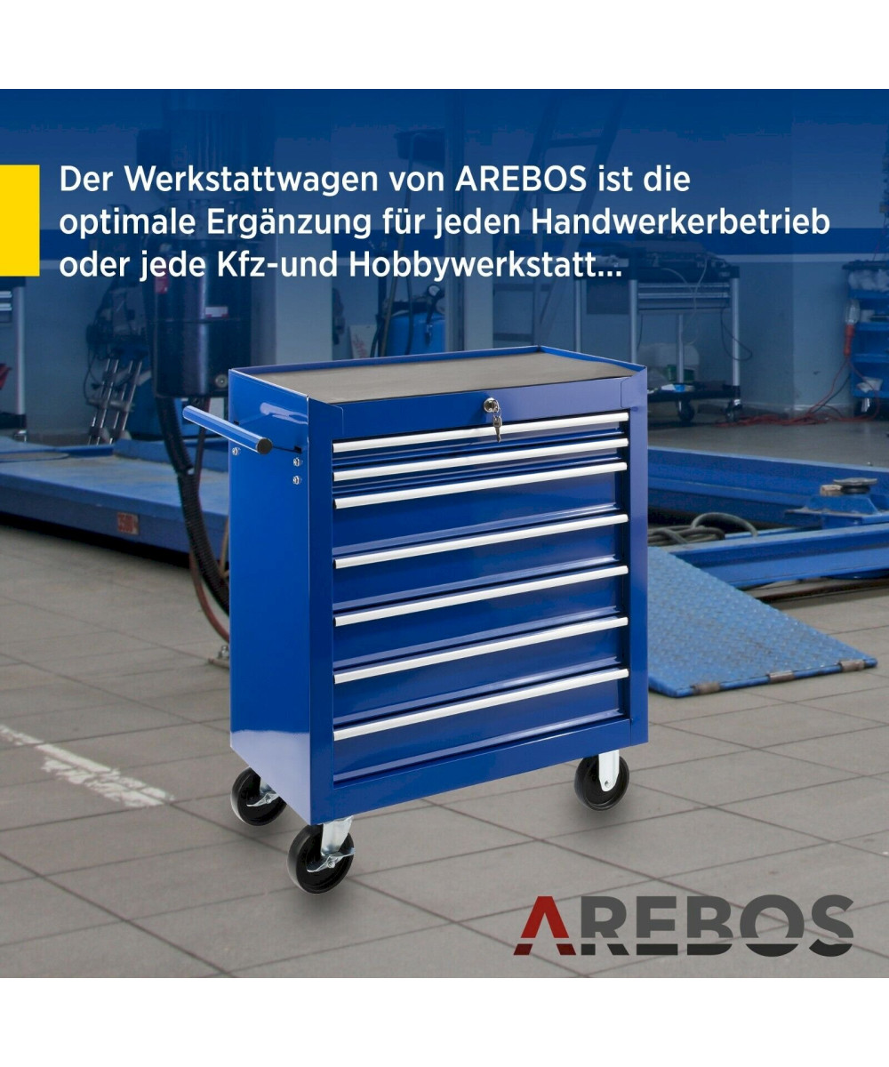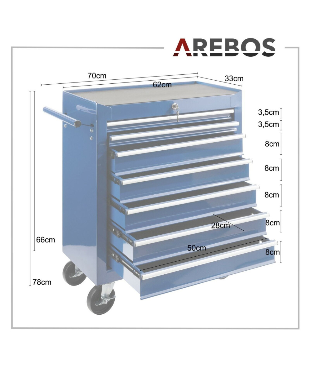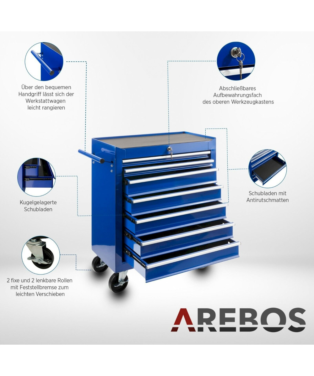 Arebos Werkzeugwagen 7 Schubladen abschließbar blau