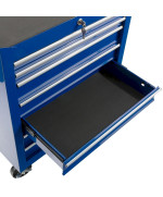 Die Öffnung und Schließung der Schubladen erfolgen dank der kugelgelagerten Schubladen sehr sanft. Außerdem bieten die großen, antirutschbeschichteten Schubladen ausreichend Platz für alle Utensilien und sorgen dafür, dass die einsortierten Werkzeuge immer an seinem Platz bleiben. - Vier drehbare Rollen, zwei Feststellbremsen und ein Schiebegriff