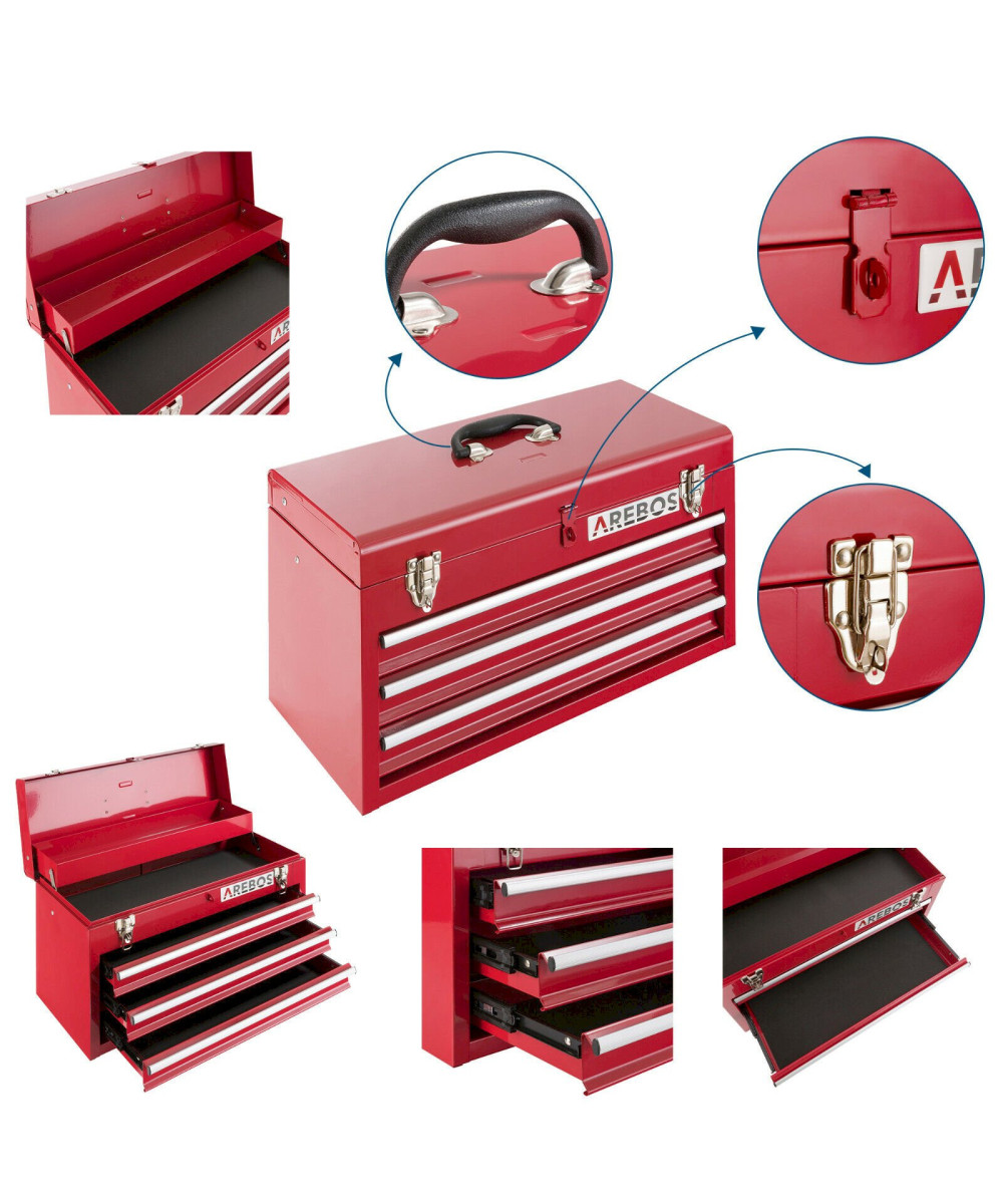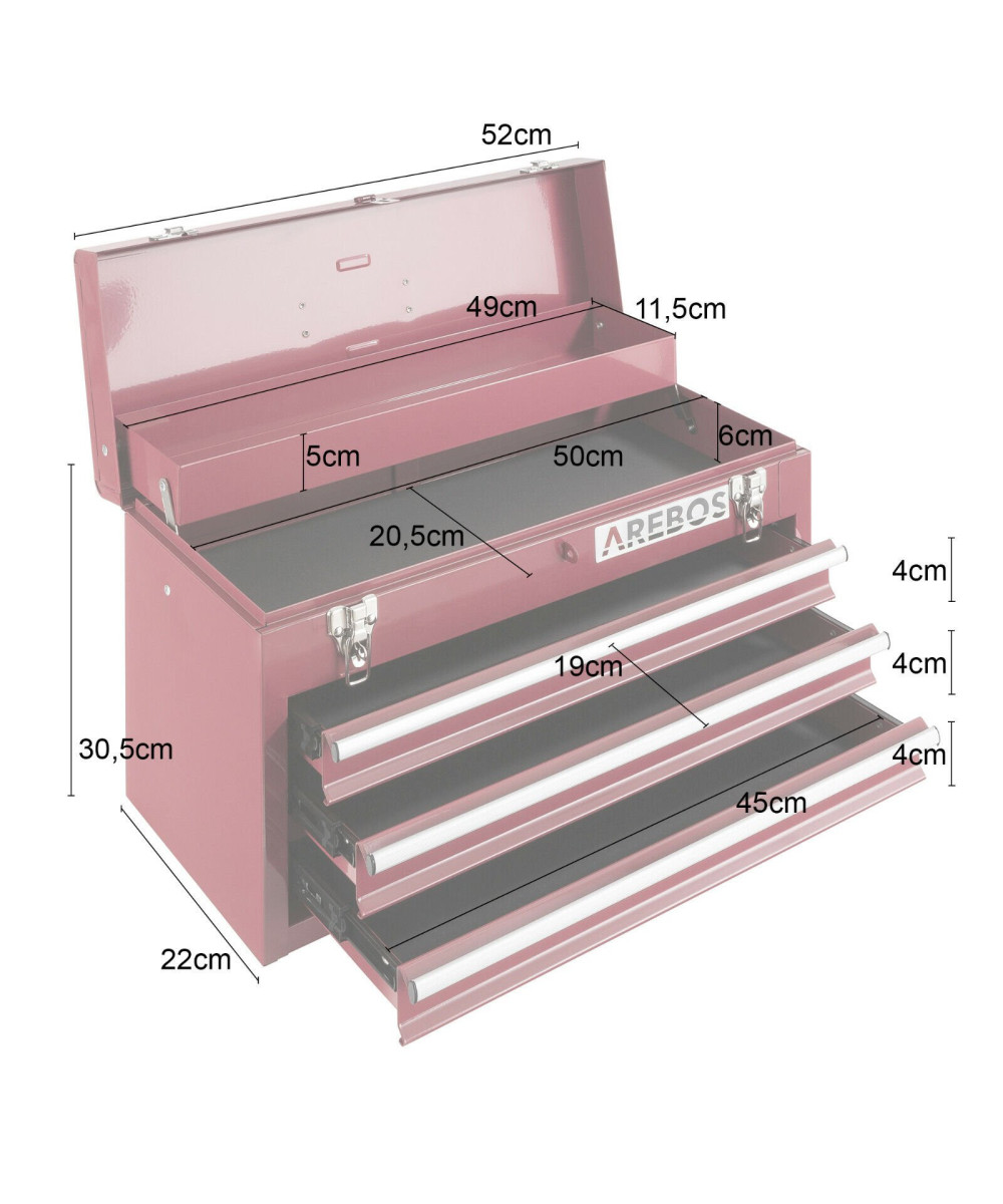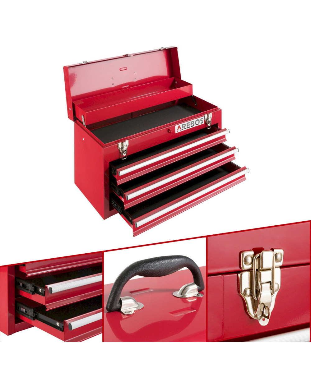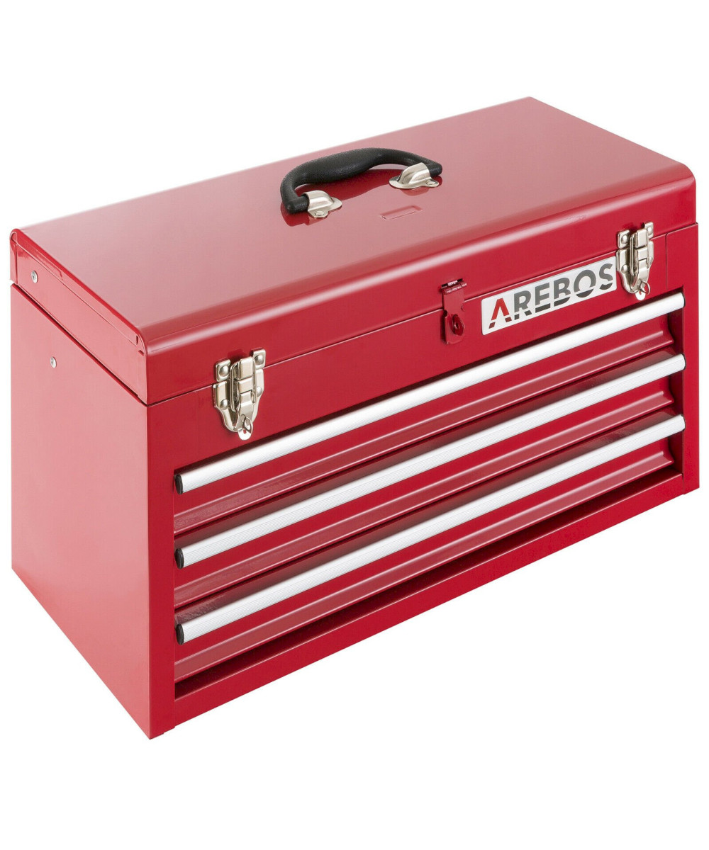 AREBOS Werkzeugkoffer 3 Schubfächer Werkzeugkasten Werkzeugbox Werkzeugkiste Rot