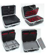 Sie haben bereits Schulter- und Rückenschmerzen, weil Sie zu viel zu schleppen haben? Ihr Reisekoffer ist einfach nicht groß genug für all ihr Gepäck? Verbinden Sie Platz und Komfort und können Sie ihren Gelenken Ruhe mit dem Werkzeugkoffer Trolley ABS schwarz 6+. Ideal geeignet für Reise, Hobby, Büro, Servicearbeiten, zum Transport und zur Aufbewahrung von Messgeräten, empfindlichen Bauteilen, Laptops, Labor-geräten, oder einfach der kleinen Garderobe. Sauber verarbeitet, aus festem ABS Kunststoff mit 2 Schlössern. Ihr neuer Werkzeugkoffer Trolley ABS schwarz 6+ bietet nicht nur Platz, ein laufender Alufalz schützt ihren Inhalt auch vor Spritzwasser. Die 4 PVC Füße unter der Bodengruppe sorgen für einen sicheren Halt beim abstellen. Der Clou: Ist der Koffer trotzdem mal wieder zu schwer, genügt ein Klick und das mitgelieferte Trolley-Gestell ist schnell am Koffer angebracht.