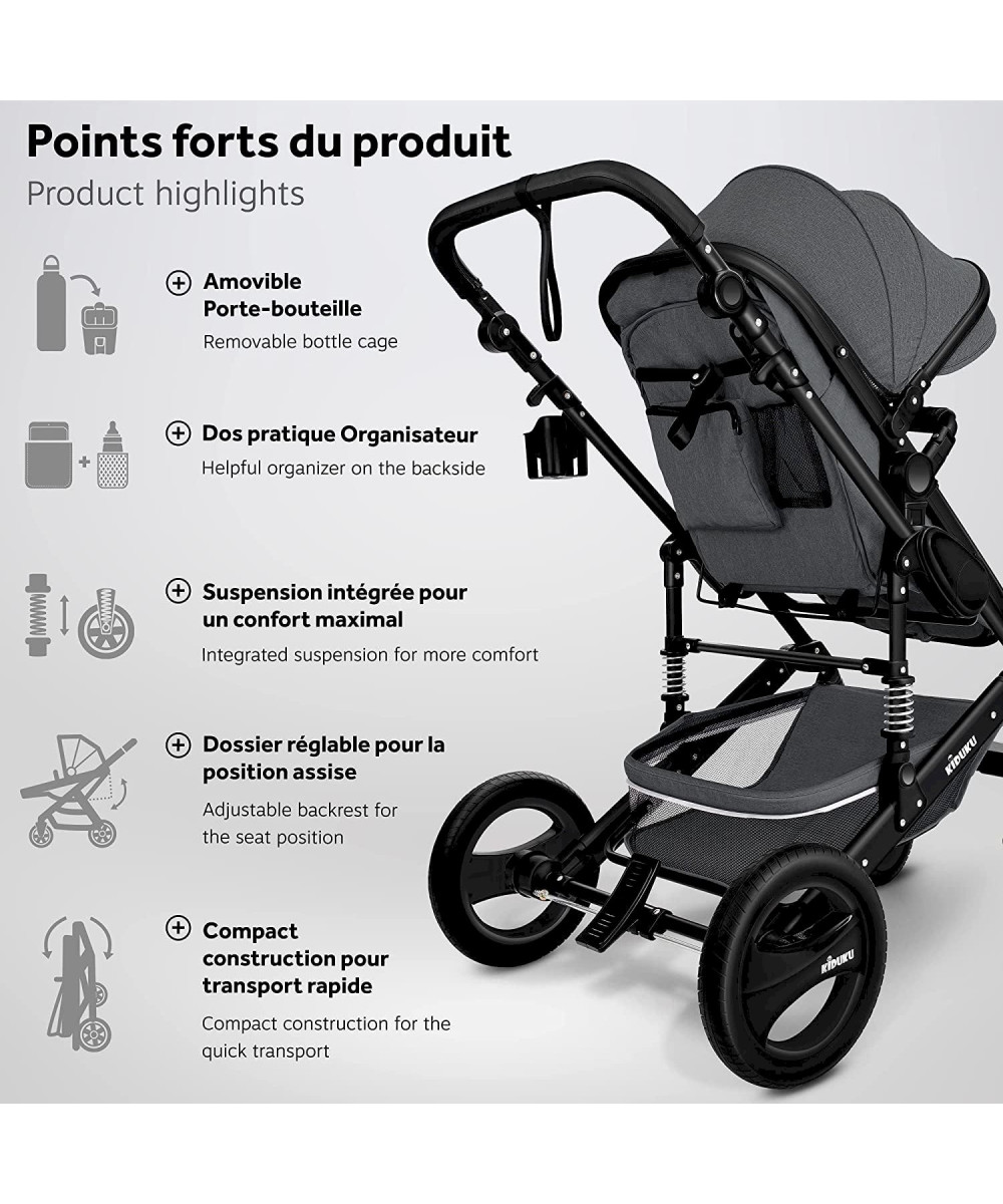 KIDUKU 3 in 1 faltbar Kinderwagen Komplettset anthrazit/schwarz