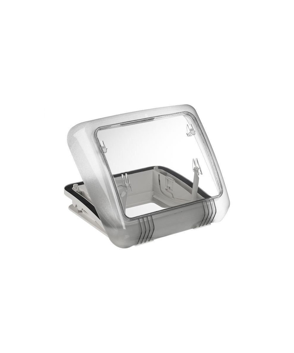 Für Reisemobile und Wohnwagen. Dieses superkompakte Dachfenster wurde speziell für den Badbereich entwickelt. Es passt in Dachausschnitte von 280 x 280 mm und lässt sich manuell mit einem Hebelsystem öffnen und schließen.