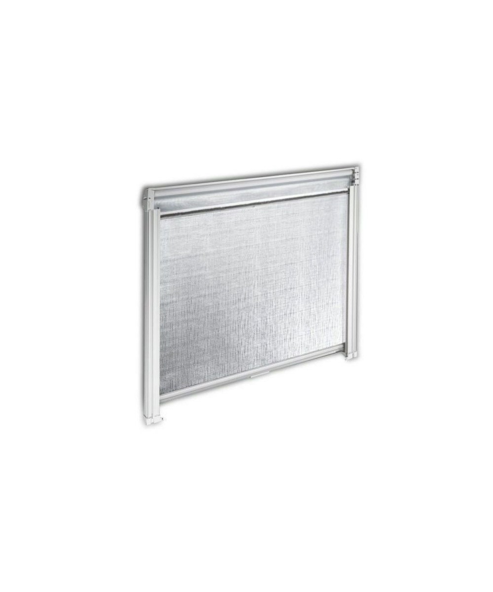 Dieses Verdunkelungsrollo für rahmenlose Fenster ist mit einem Fliegengitter ausgestattet und lässt sich dank des federbetriebenen Mechanismus mit Geschwindigkeitskontrolle mühelos aufrollen. Die Aluminiumbeschichtung sorgt für eine ausgezeichnete Isolierung.