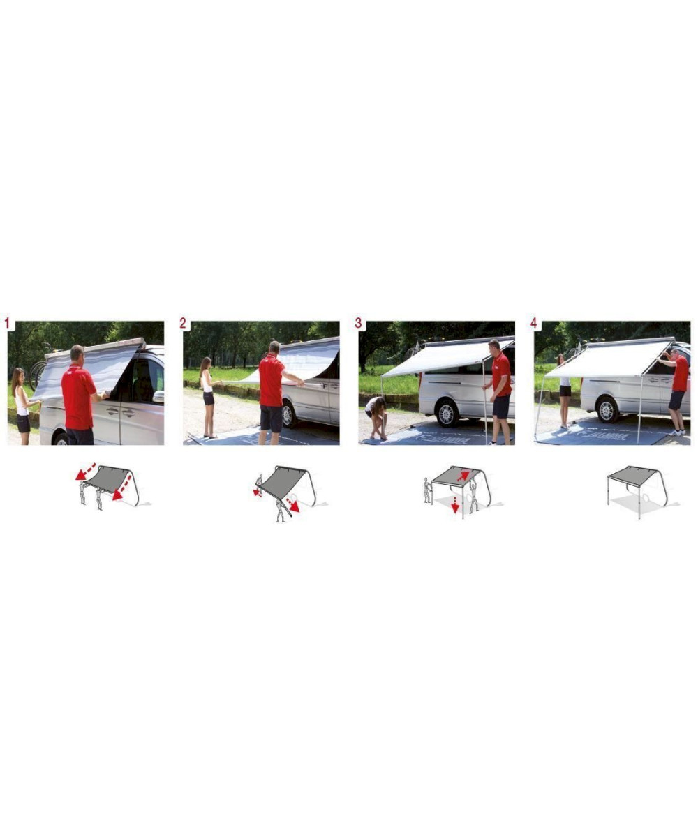 Die Markise für Ihren Wohnwagen, Campingbus, Geländewagen oder Kombi. Robustes, eloxiertes Aluminiumgehäuse mit manueller Handhabung Die Fiamma F35 Pro ist die praktische, manuell zu betätigende Markise mit integrierten Stützfüssen in der Walze, welche dank der verschiedenen Halterungen an die Fahrzeugwand, Dachträger oder Schiene jeglicher Campingbusse angebracht werden kann. Durch ihre geringe Höhe ist sie ideal für Campingbusse.