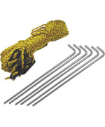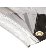 Die Markise kann auch mithilfe der integrierten Ösen und der mitgelieferten Spannleinen und Heringe freistehend verwendet werden. Dank der PU-Beschichtung (Wassersäule 2000 mm) ist diese Plane wasserdicht. Eine praktische Tragetasche ist im Lieferumfang enthalten.