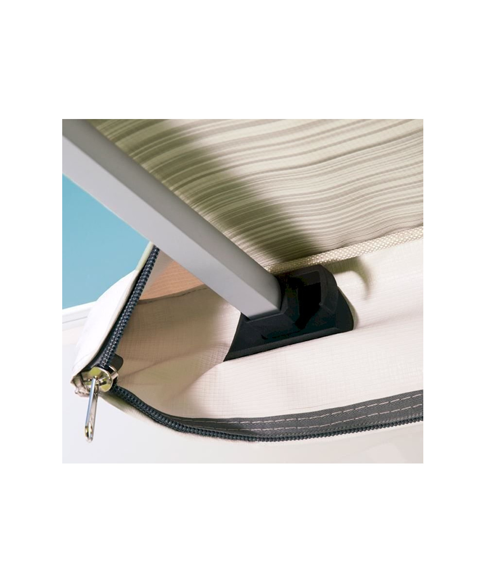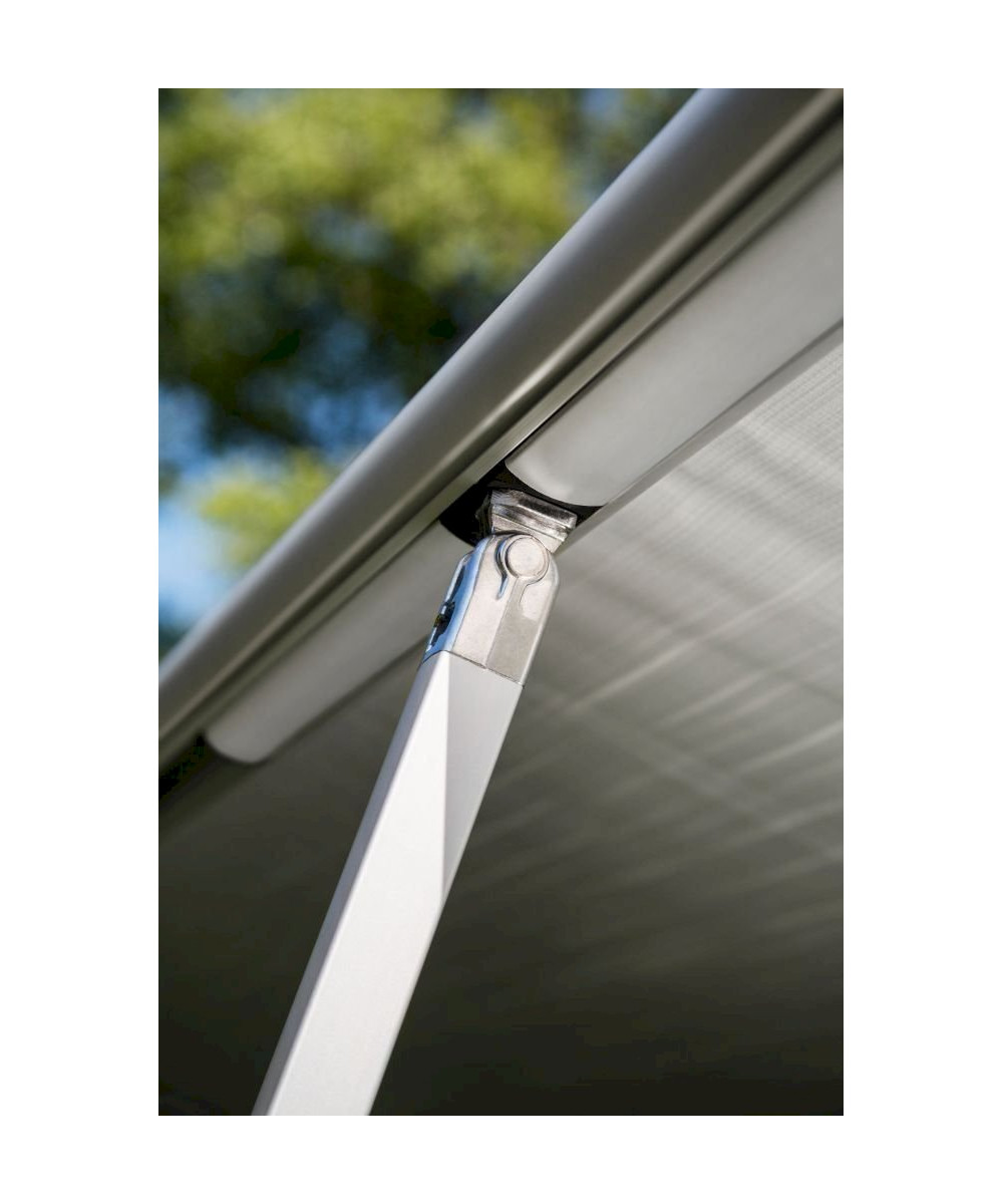 Bemerkenswert hohe Stabilität für eine Taschenmarkise dank der stabilen Tuchrolle mit integrierten Spannarmen und Stützfüßen.