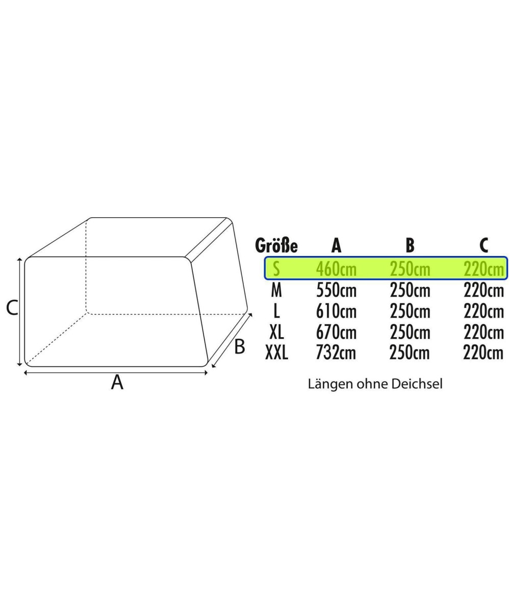 - Maße (LxBxH): 460 x 250 x 220 cm