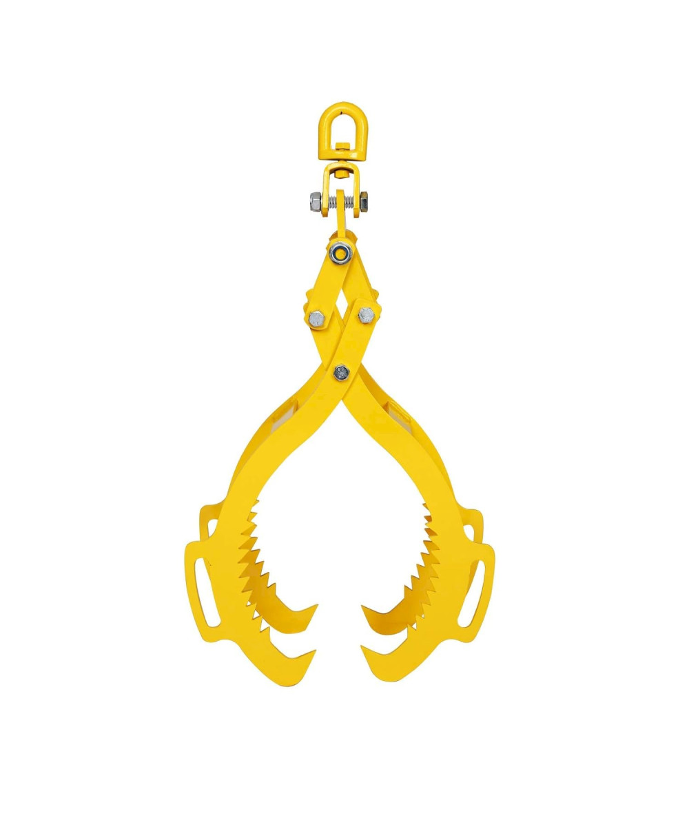 Die Forstzange ist mit 4 großen Krallen und vielen kleineren Haken ausgestattet, die den Baumstamm sicher greifen. Die Backenöffnung kann Stämme mit einer Breite von bis zu 600 mm packen. Die Konstruktion ist sehr stabil und kann Holz bis zu einer Last von 800 kg heben.