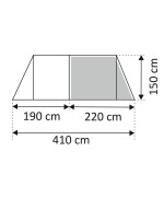 - Material: 190T Polyester, PU-beschichtet, Boden aus PE-Folie in der Schlafkabine