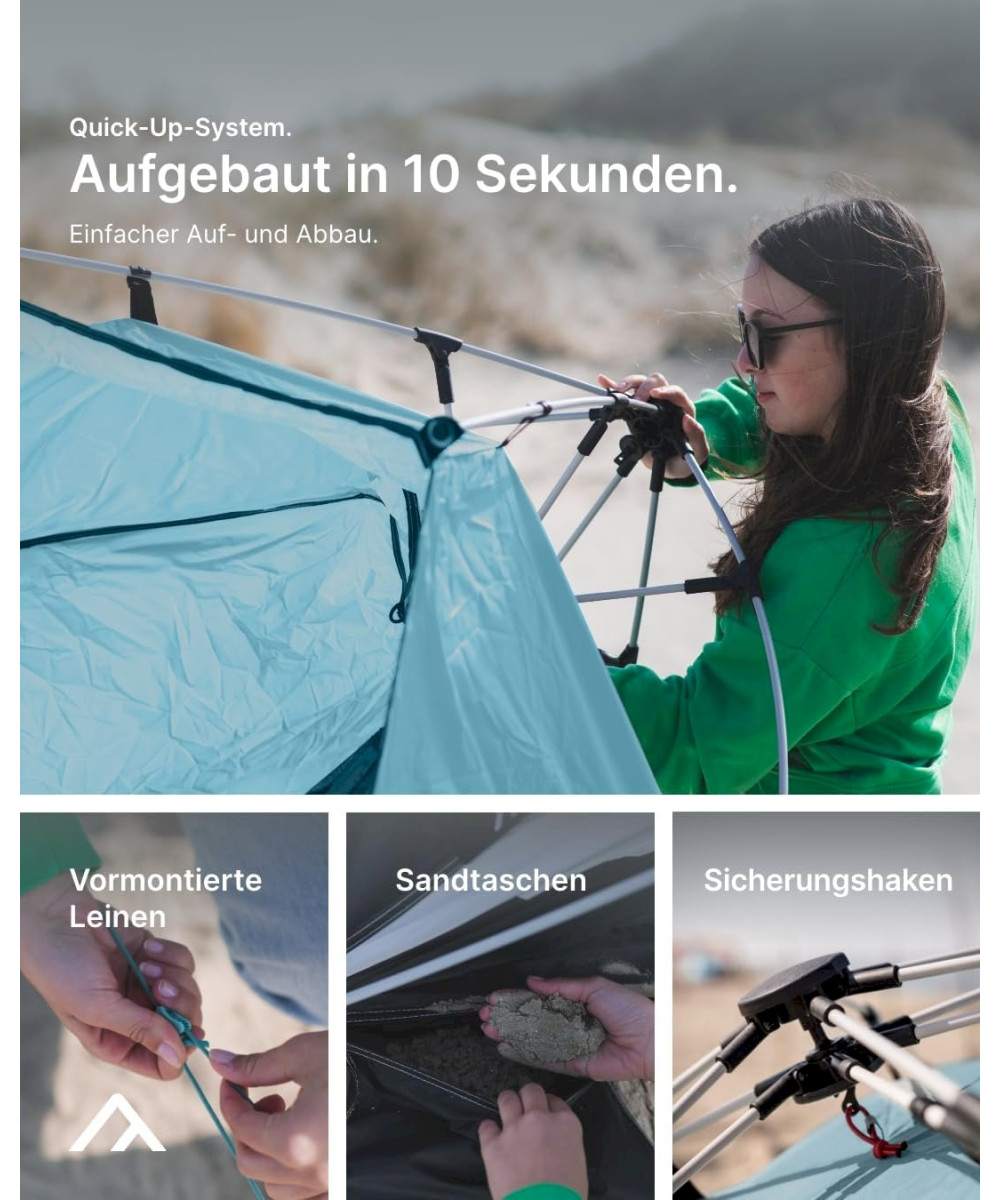 - QUICK-UP-SYSTEM: wenige Sekunden Aufbauzeit - einfacher im Abbau als selbstaufbauende Pop-Up Strandmuschel