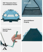 - GERÄUMIG: ausreichend Platz für ca. 2-3 Personen / Windstabil dank Abspannleinen und Sandsacktaschen