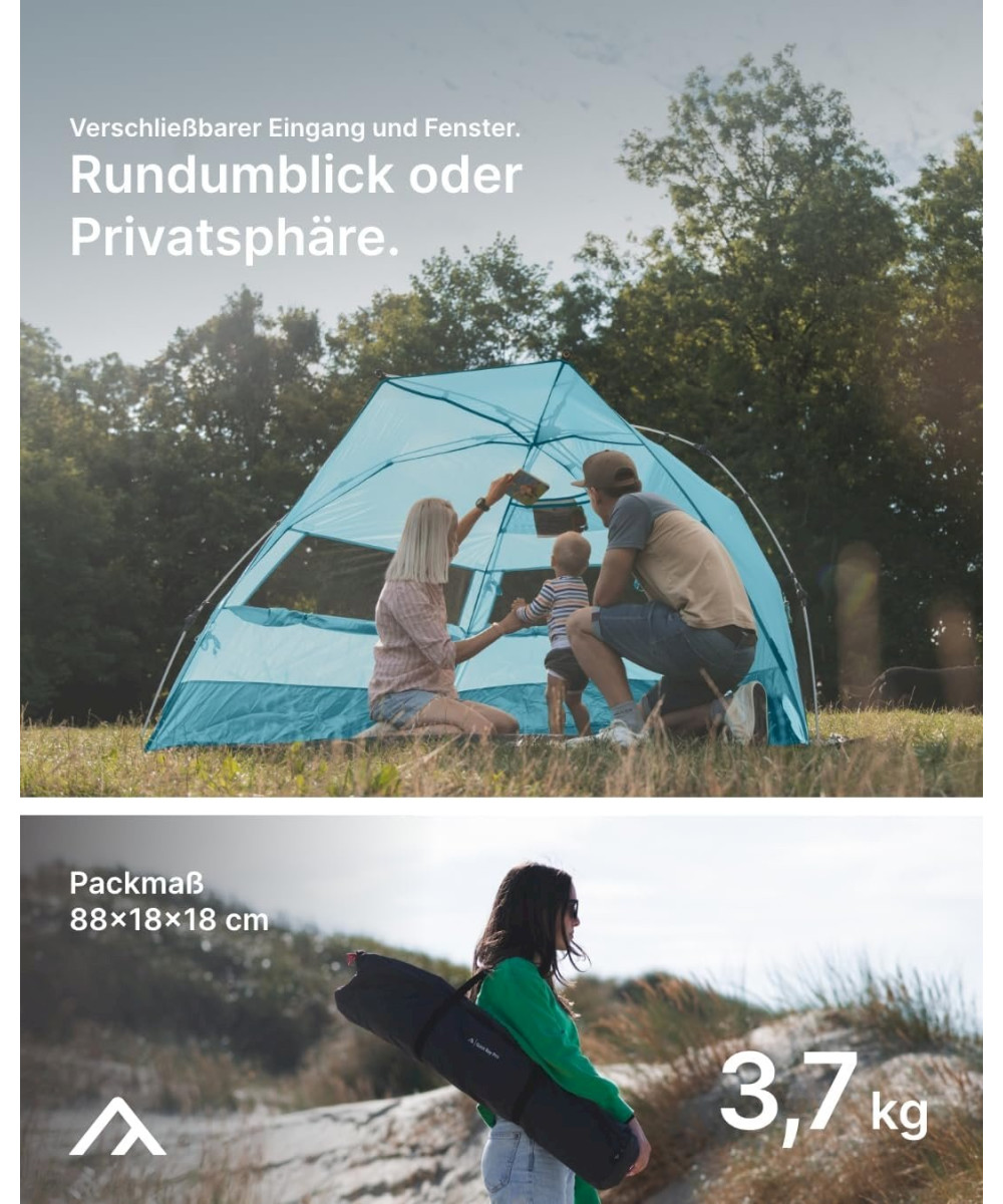 - UV-SCHUTZ: XXL Strandzelt mit zertifizierten Lichtschutzfaktor UV 80 / Sonnenschutz für Familien, Kinder & Baby´s