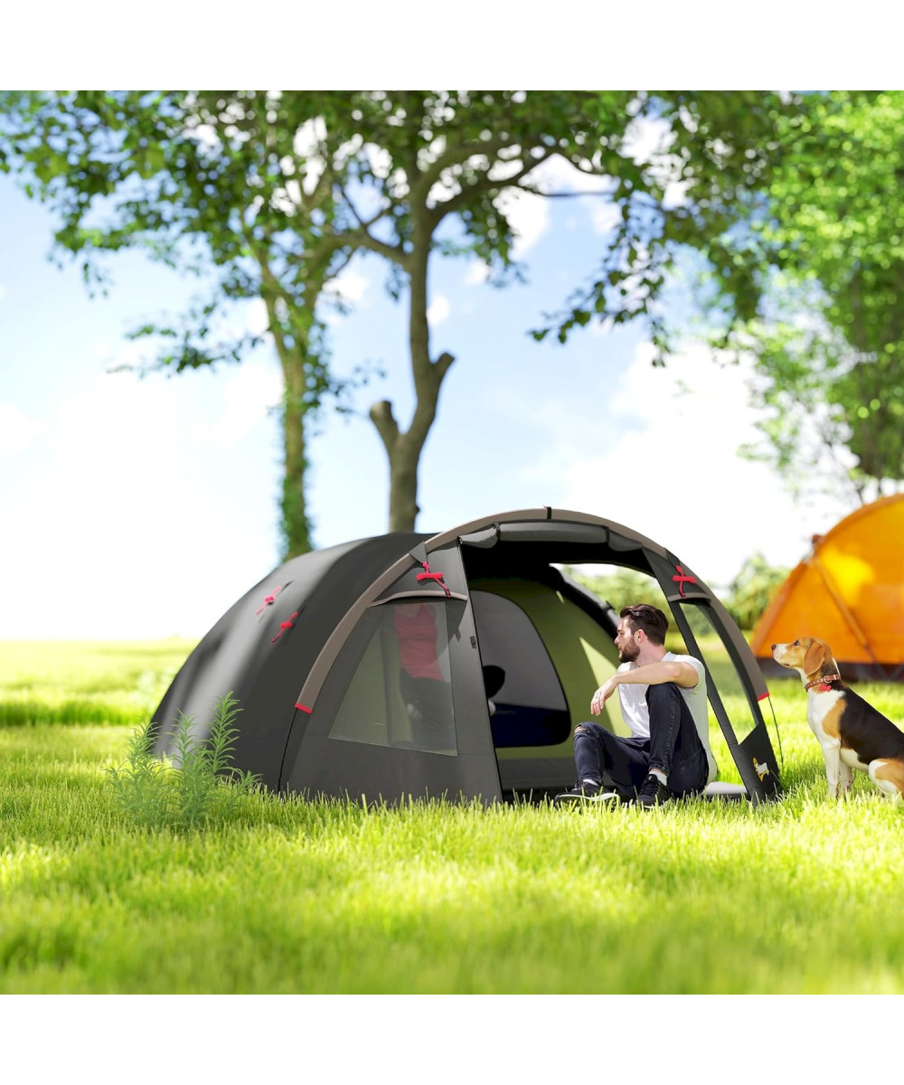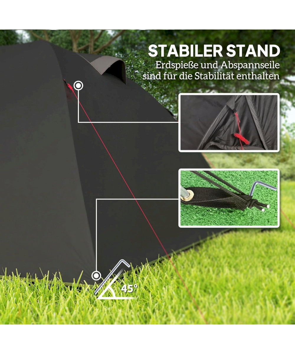 Outsunny Tunnelzelt für 4 Personen leicht UV 50+ Campingzelt mit Vordach Doppeltür Schwarz