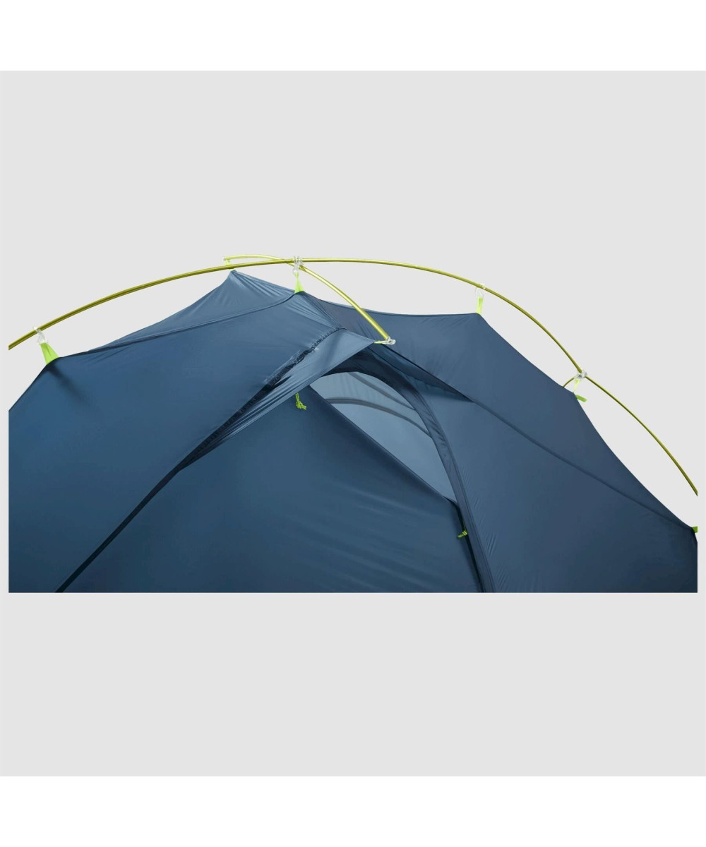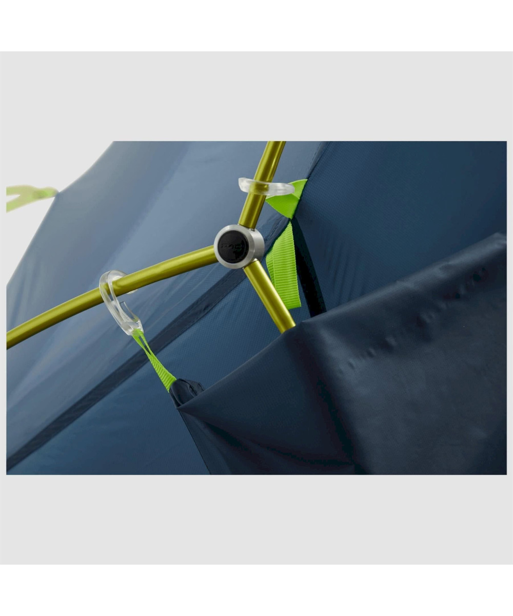 Die Gestängekonstruktion hängt komplett zusammen. Das macht es besonders windstabil und kinderleicht aufzubauen. Du brauchst dafür nur wenige Heringe – ein Vorteil, wenn du zum Beispiel auf felsigem Untergrund campen willst. Innen- und Außenzelt sind miteinander verbunden und werden per Clipfixierung einfach ins Gestänge eingehängt – praktisch, wenn du das Zelt mal im Regen aufbauen musst.