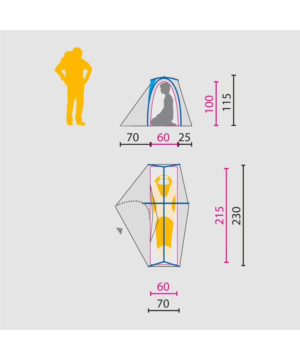 - Innenzelt-Maße: [L x B x H] 215 x 60/60 x 100 cm