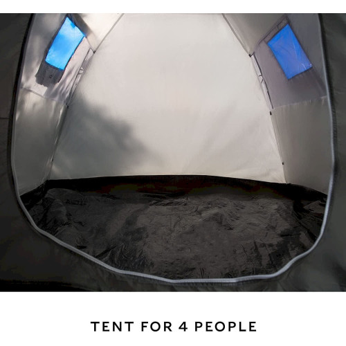 Perfekt für Familiencamping. Der Schlafbereich bietet Platz für bis zu 4 Personen im Inneren und ermöglicht es Ihnen, nach einem ereignisreichen Tag bequem zu schlafen und sich zu entspannen.